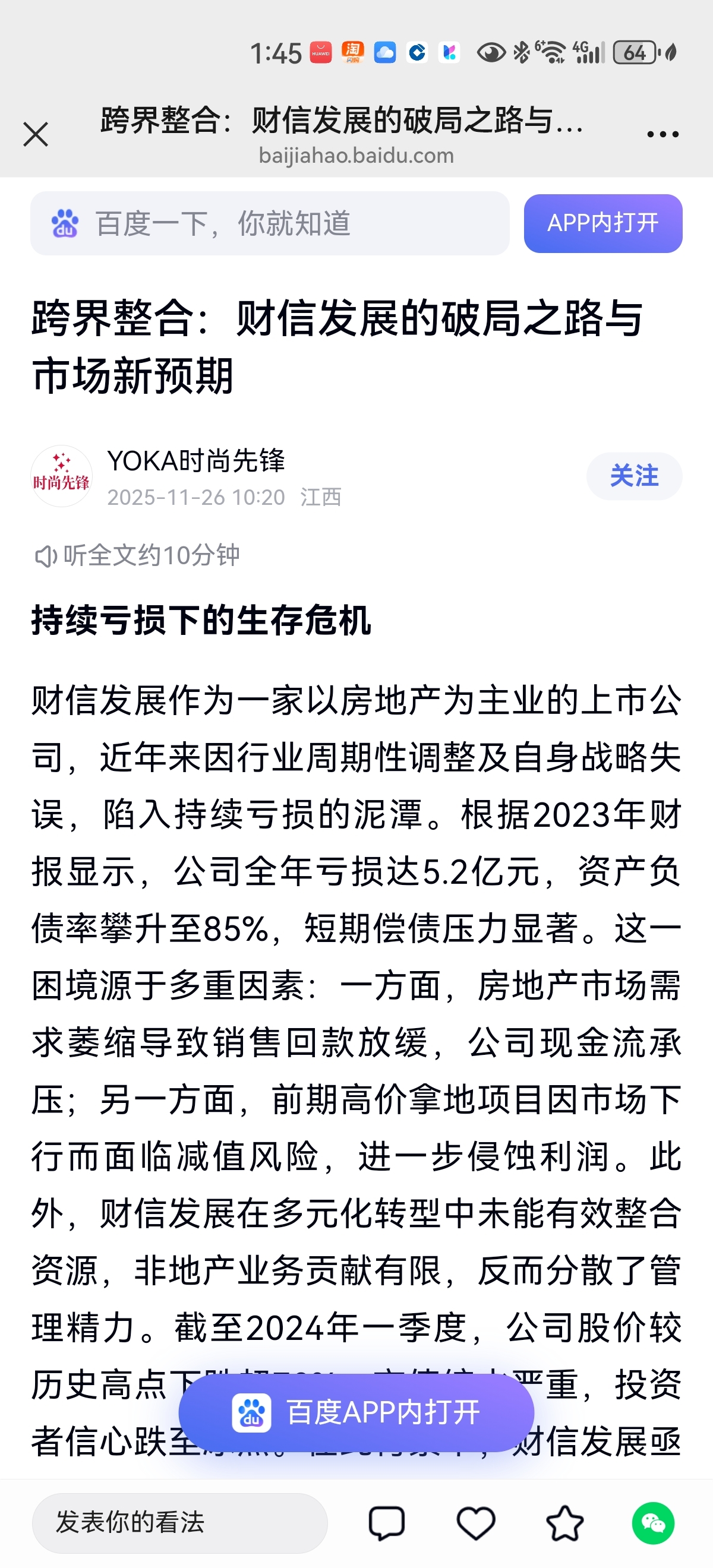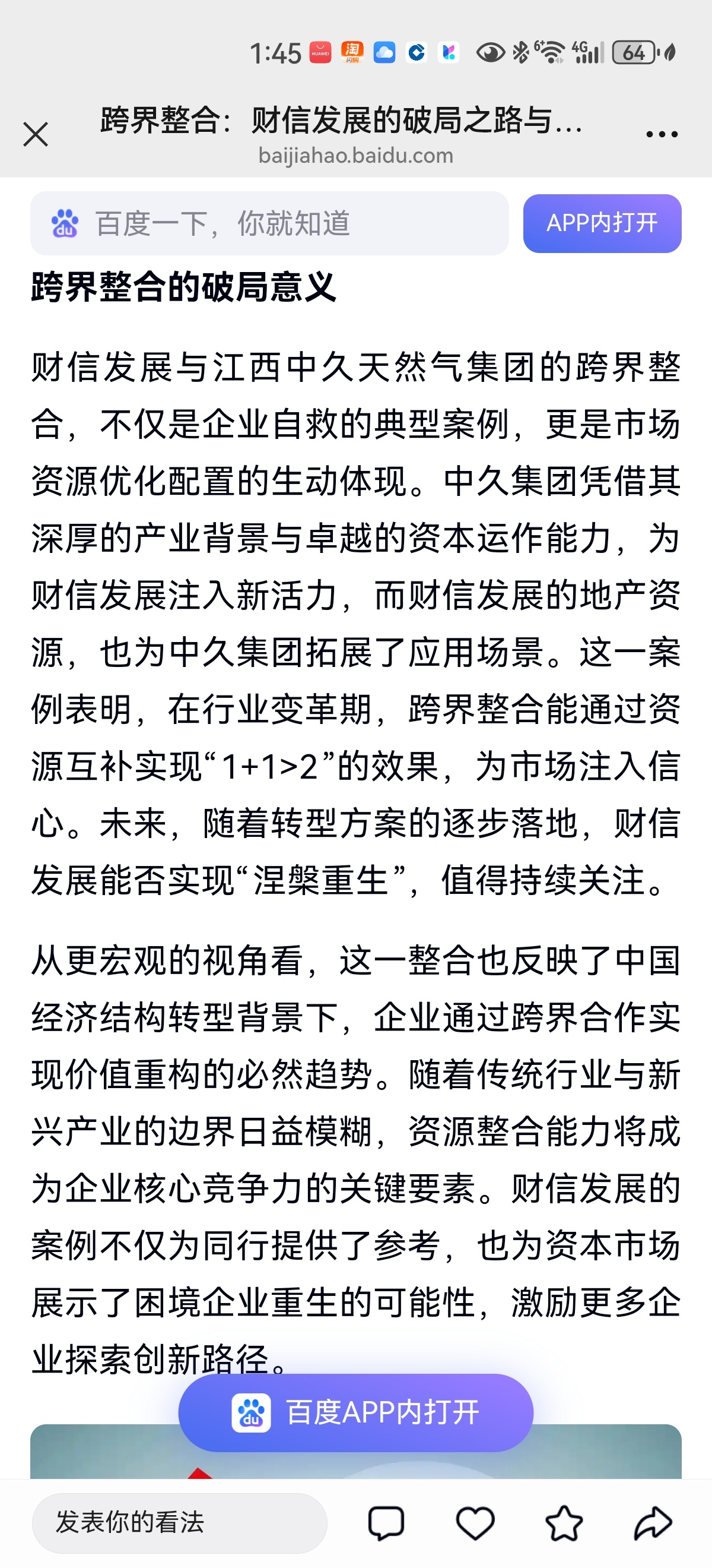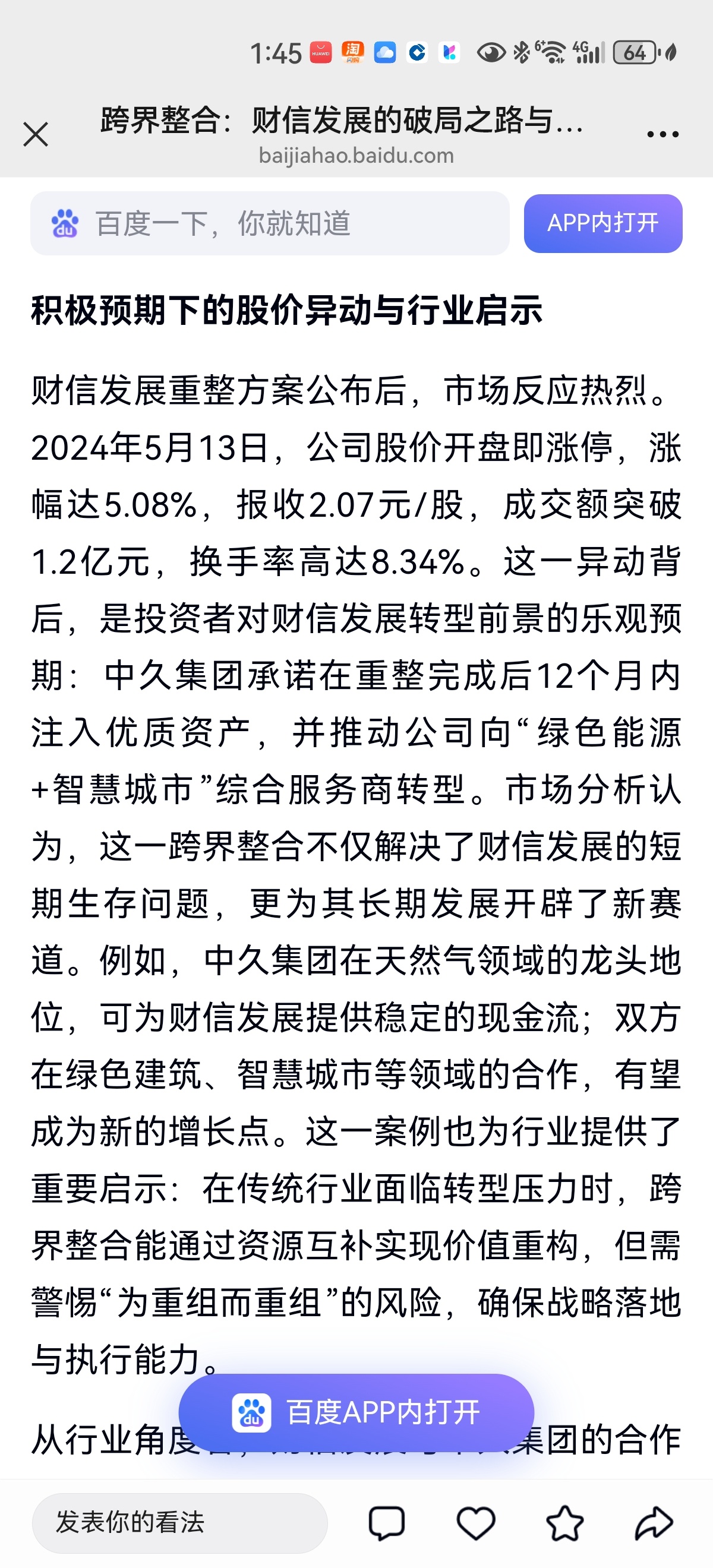 $财信发展(SZ000838)$ 这算不算是利好消息?看来我还是买回来吧!