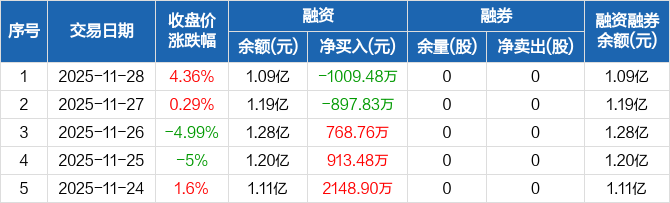 财信发展:融资净偿还1009.48万元,融资余额1.09亿元(11-28)