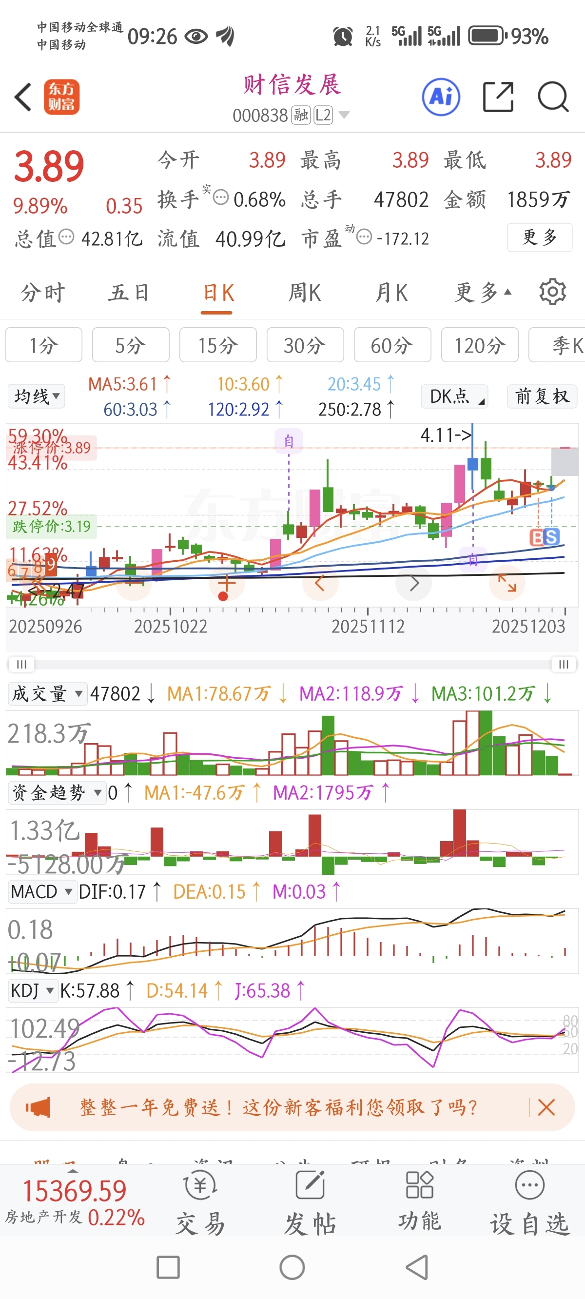 $财信发展(SZ000838)$ 和发财擦肩而过666666