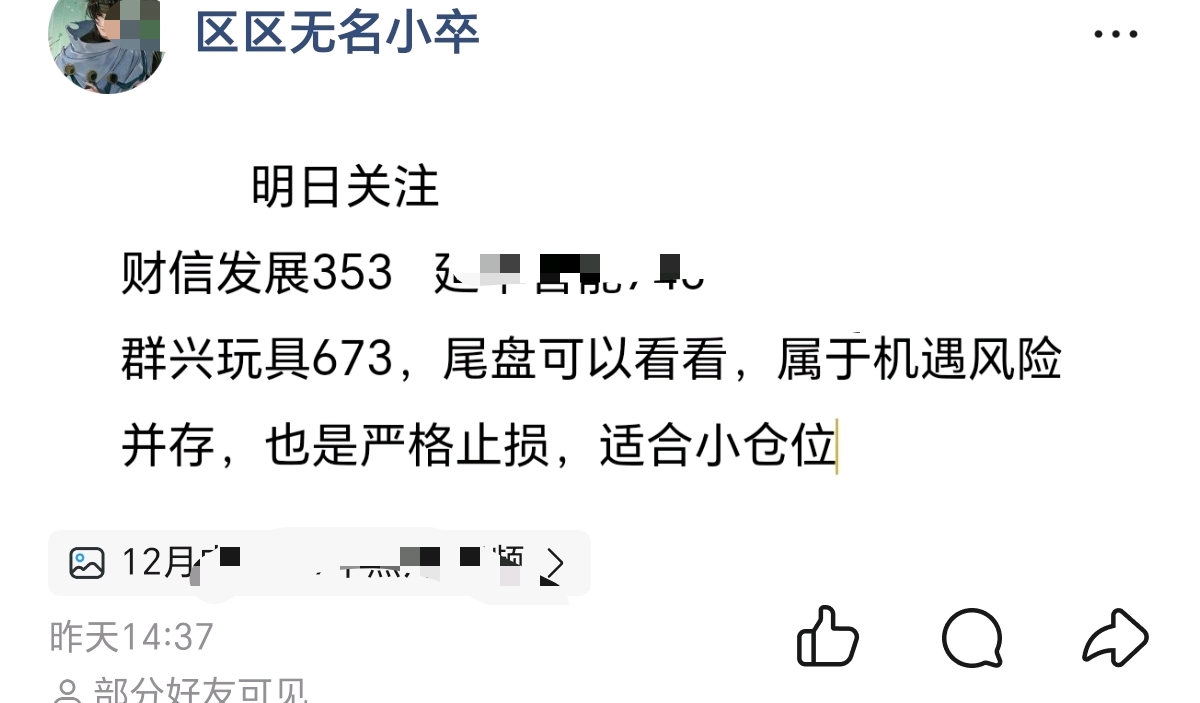 郑重声明:用户在财富号/股吧/博客等社区发表的所有信息(包括但不限于文字、视频、音频、数据及图表)仅代表个人观点,与本网站立场无关,不对您构成任何投资建议,据此操作风险自担。请勿相信代客理财、免费荐股和炒股培训等宣传内容,远离非法证券活动。请勿添加发言用户的手机号码、公众号、微博、微信及QQ等信息,谨防上当受骗!