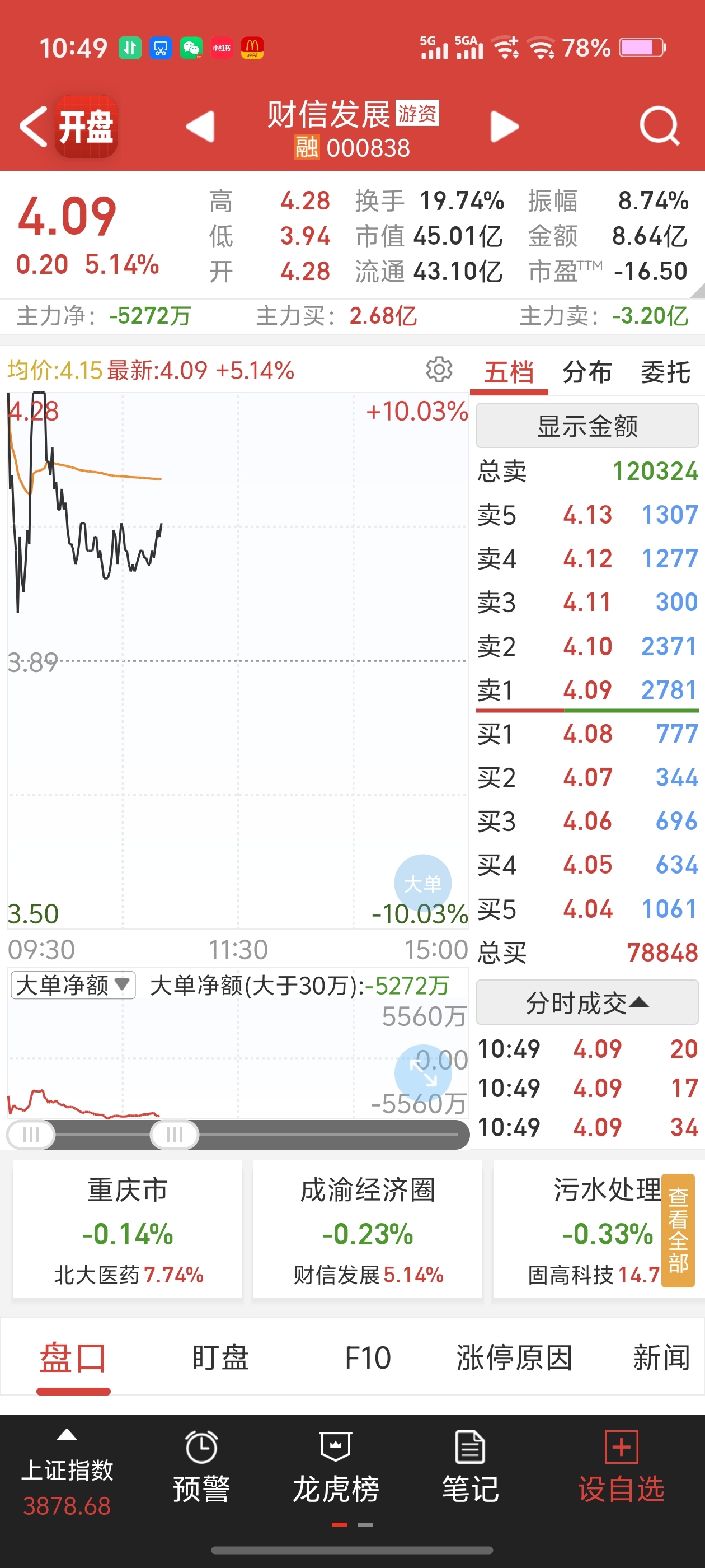 $财信发展(SZ000838)$ 我感觉今天主力想拉涨停简简单单。如果下午不封死涨停,那就是该减仓了。如果爆量涨停,最好走换手板。明天再缩量涨停,才是健康的。反正不涨停就减