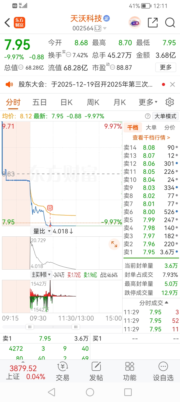 今天买了两支票,追涨打板财信发展就断板了,抄底天沃科技就跌停板封死!追涨亏,抄底