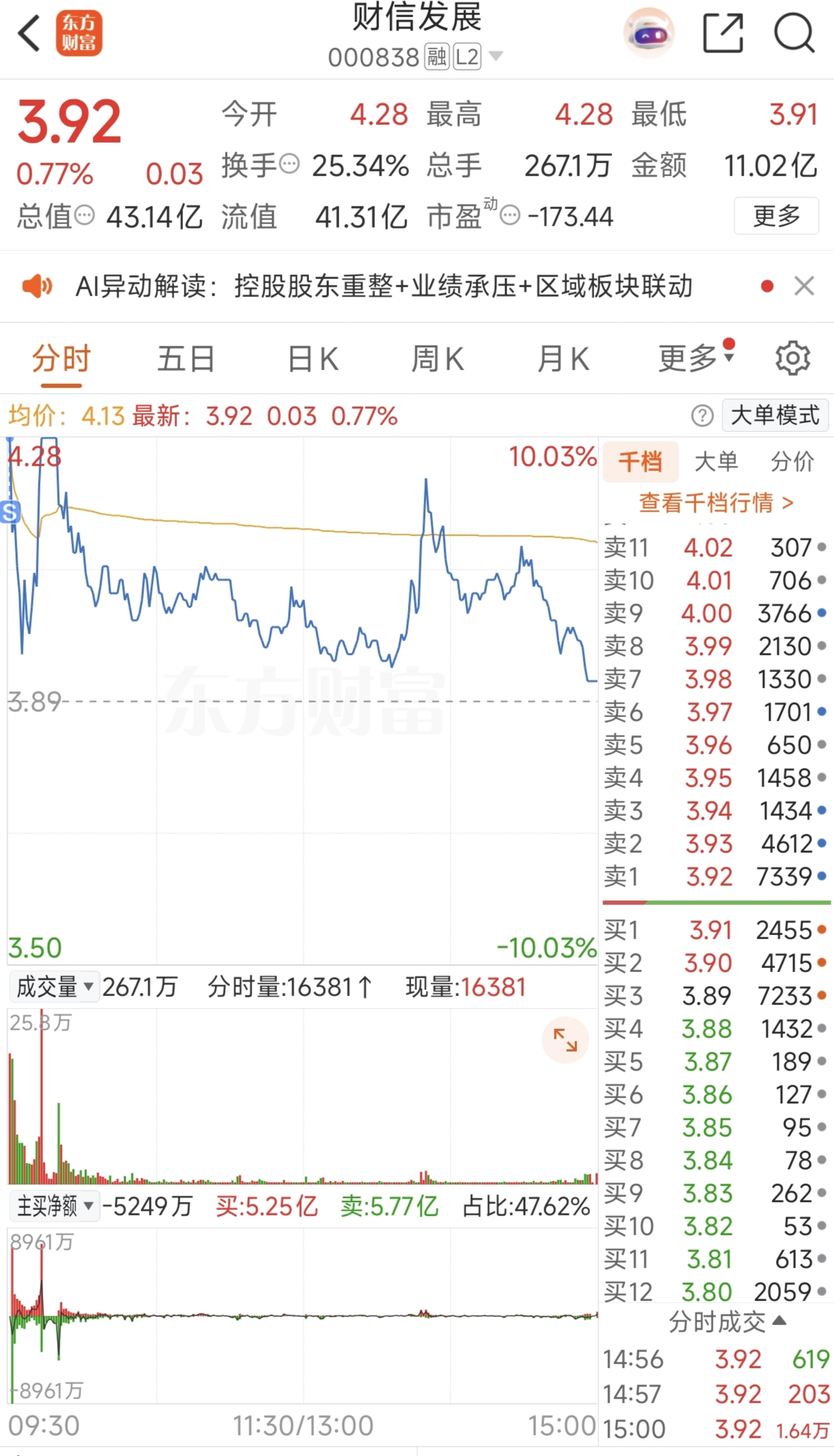 $财信发展(SZ000838)$ 主力太狠了,格局不了一点
