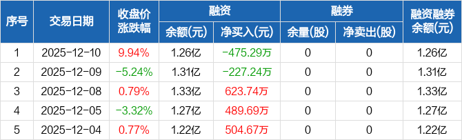 财信发展:融资净偿还475.29万元,融资余额1.26亿元(12-10)