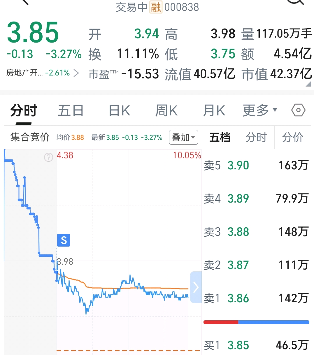 $财信发展(SZ000838)$ 昨天有人问我走不走,已经说了集合竞价走