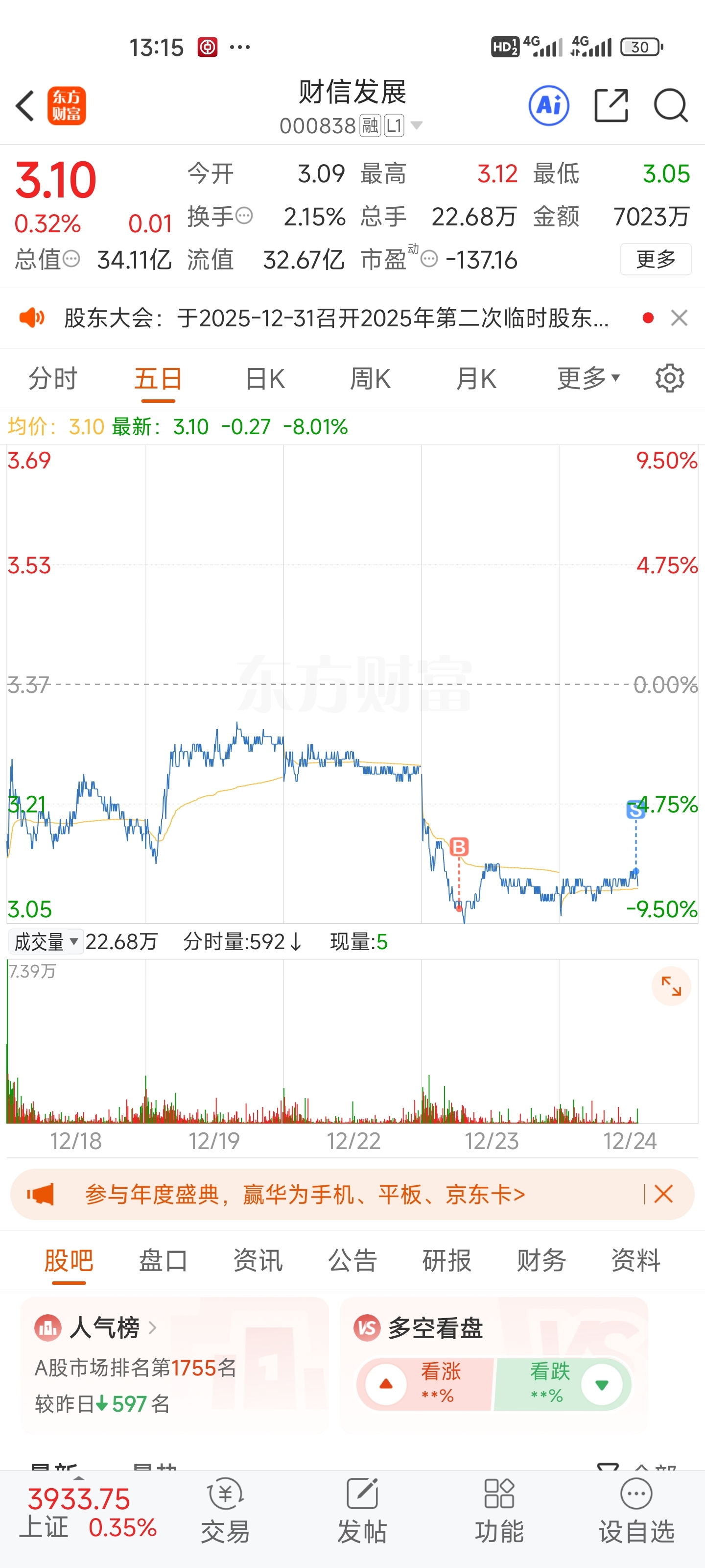 $财信发展(SZ000838)$ 溜了溜了