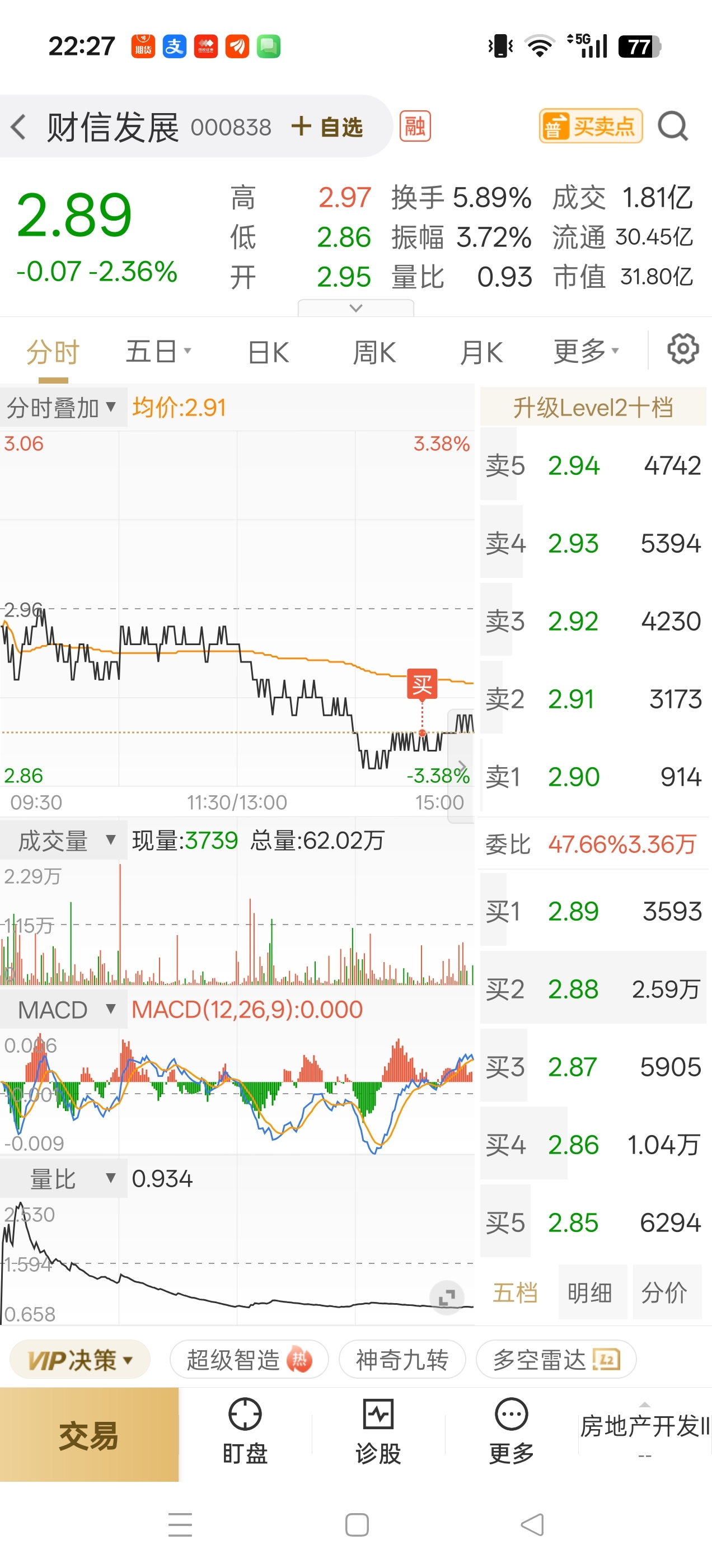 $财信发展(SZ000838)$ 4000股,明天涨一毛就卖。。十点半起床,就这么定了。。