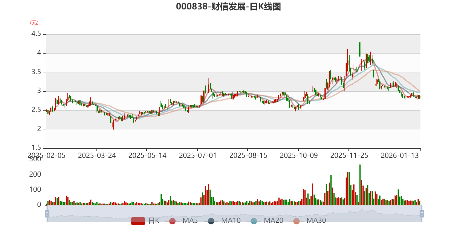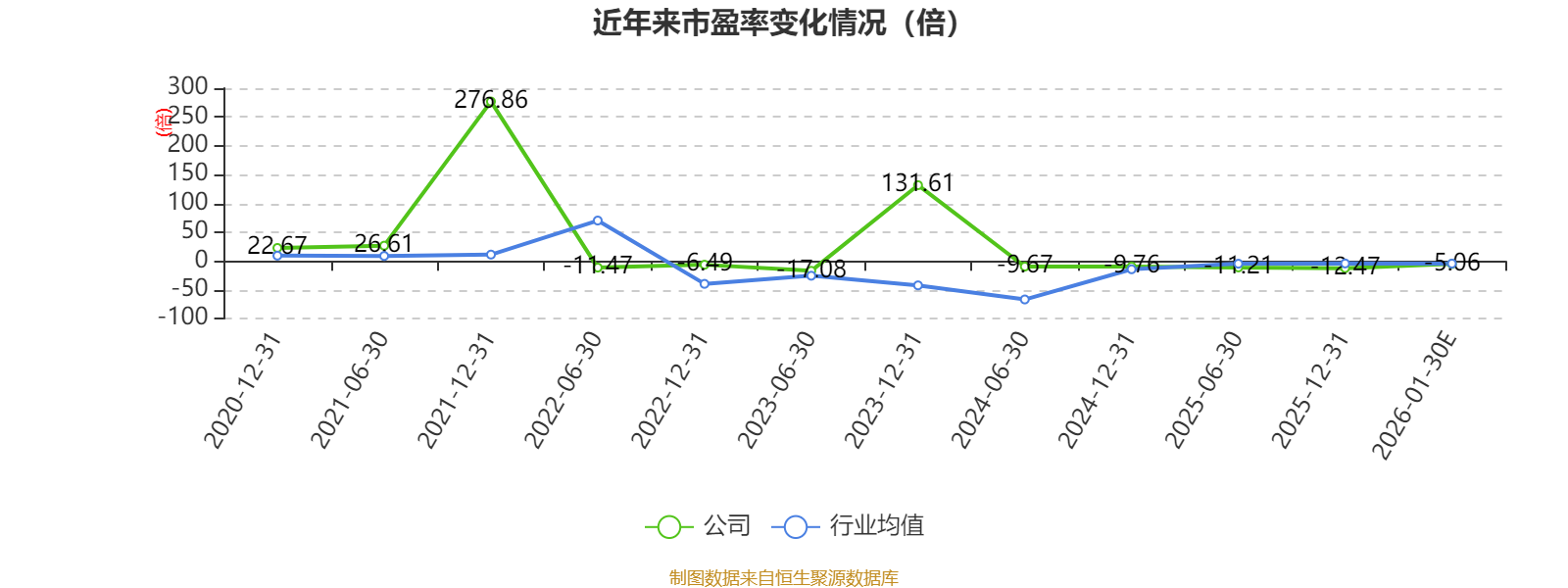 中证智能财讯财信发展(000838)1月30日晚间披露2025年度业绩预告,预计2025年实现营业收入2亿元至2.9亿元;归母净利润亏损5亿元至8亿元,上年同期亏损2.6亿元;扣非净利润亏损4.8亿元至7.8亿元,上年同期亏损2.18亿元;基本每股收益-0.4544元/股至-0.727元/股。以最新收盘价计算,市净率(LF)约7.59倍,市销率(TTM)约12.71倍。