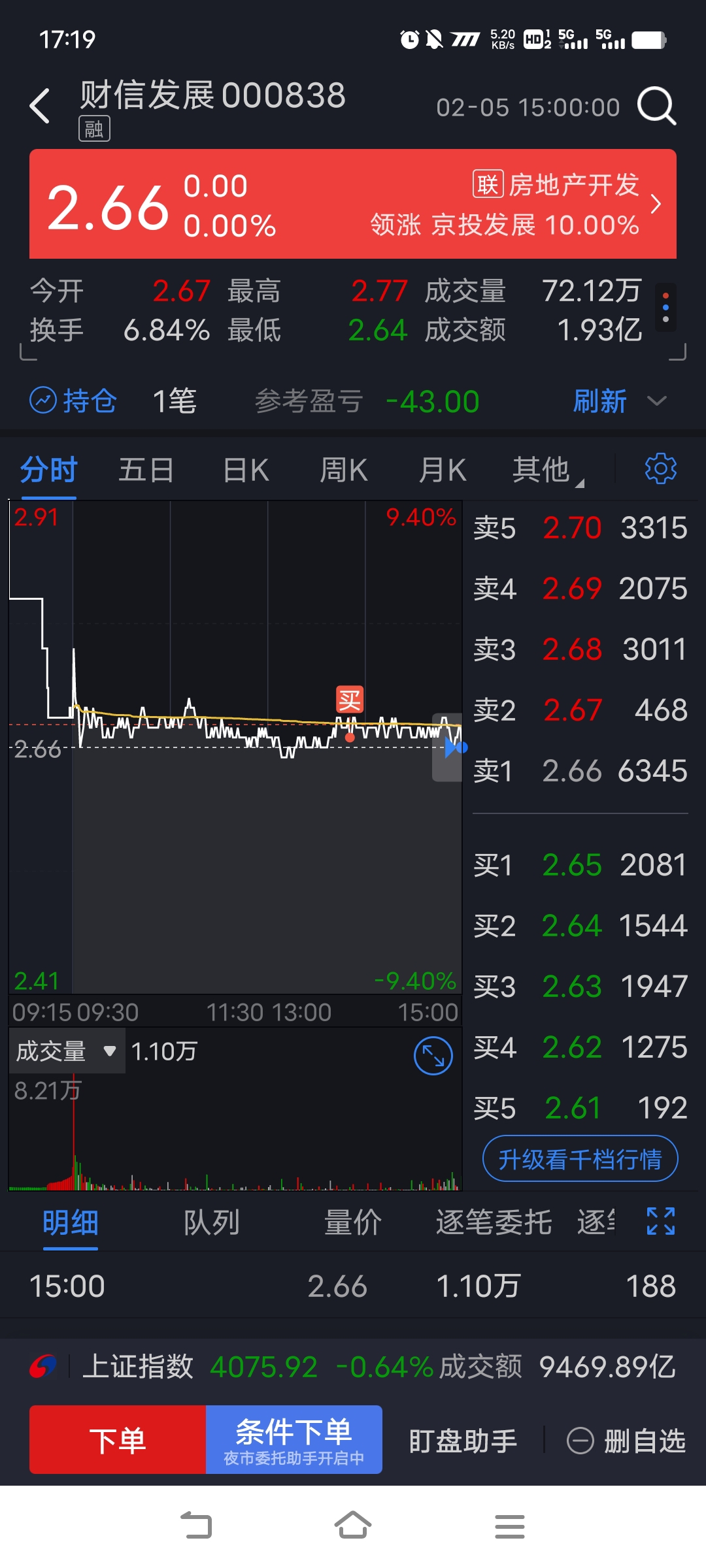 $财信发展(SZ000838)$ 里面的兄弟注意了我来拯救你们了