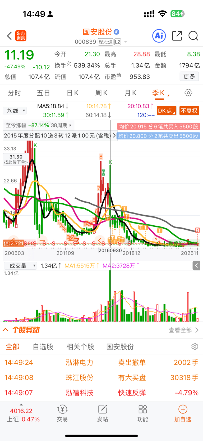 $国安股份(SZ000839)$ 我买的不是股,是情怀,一样的买了5500股才一万多元