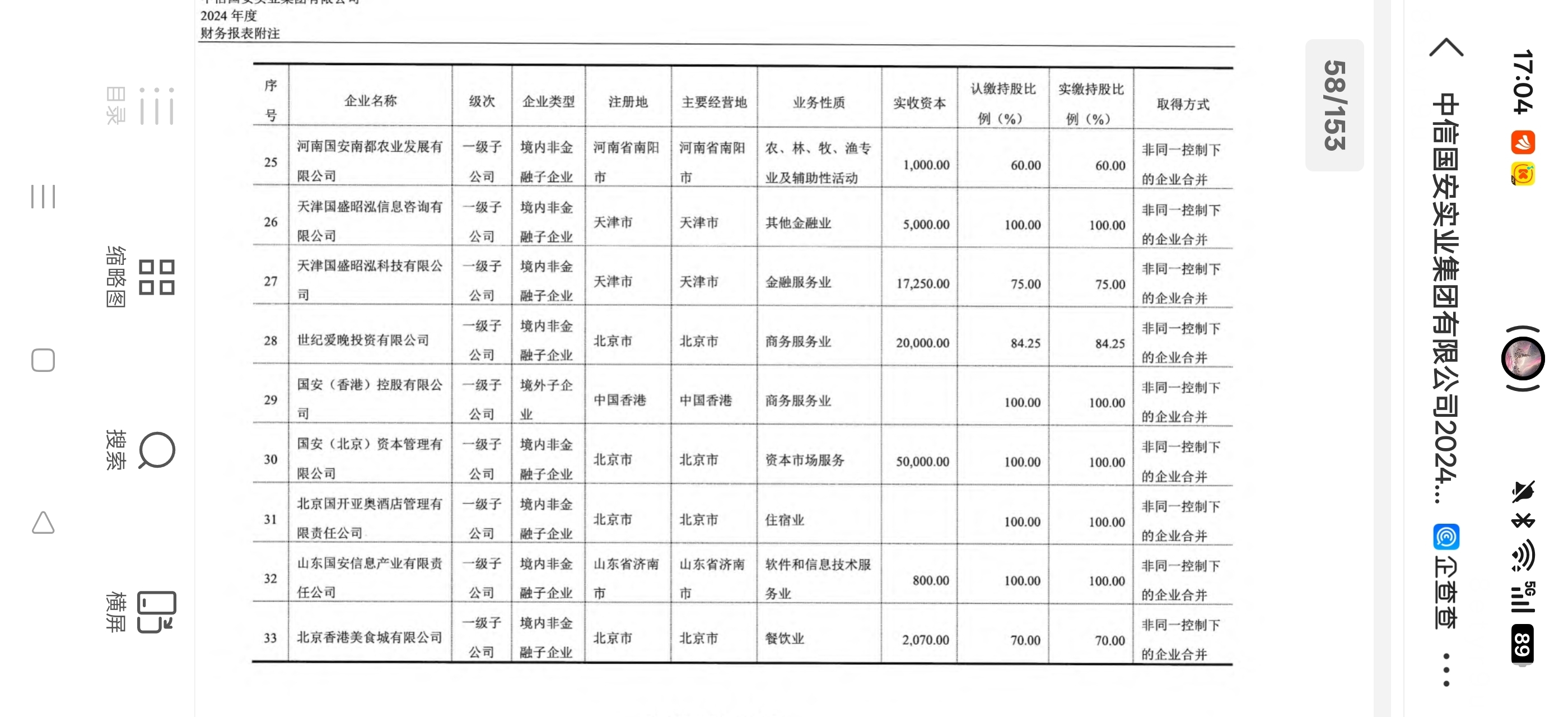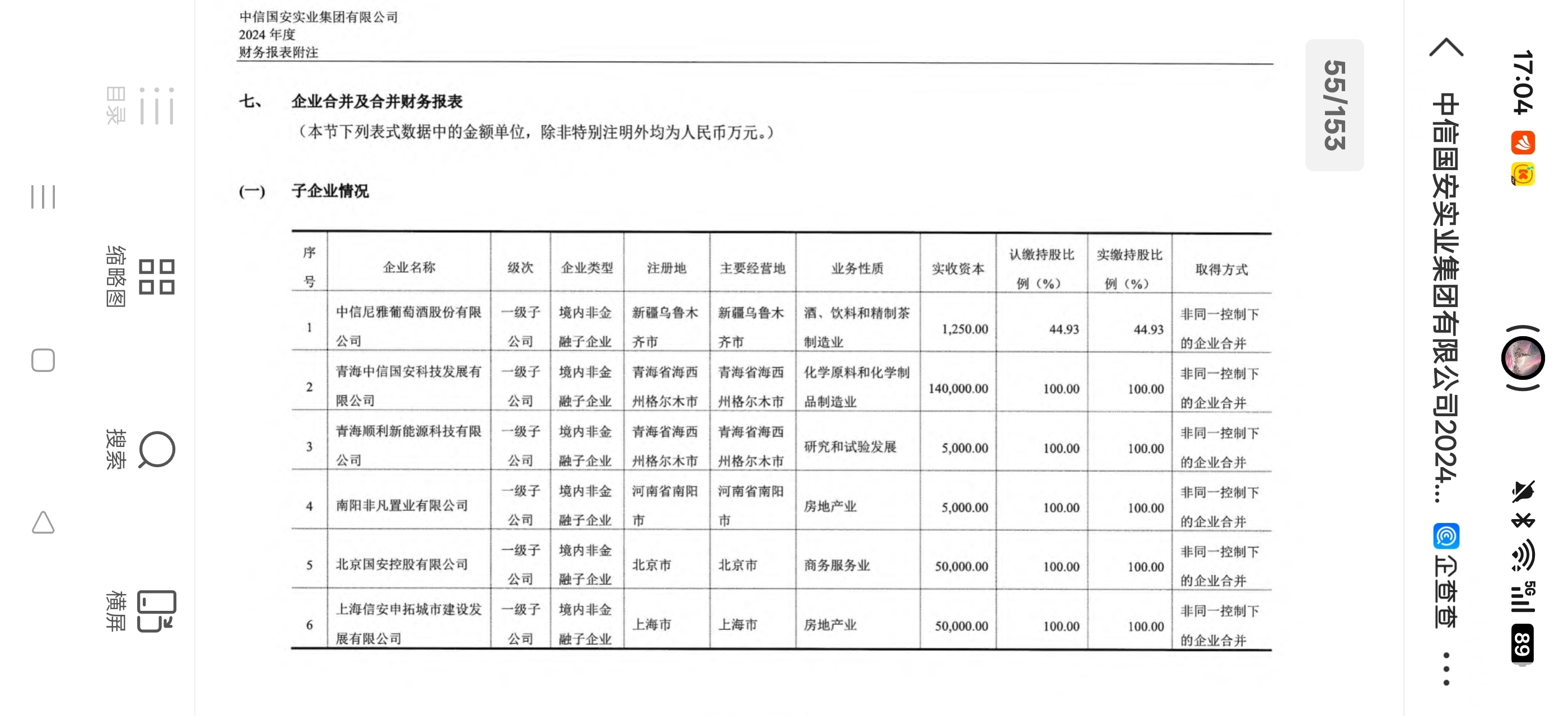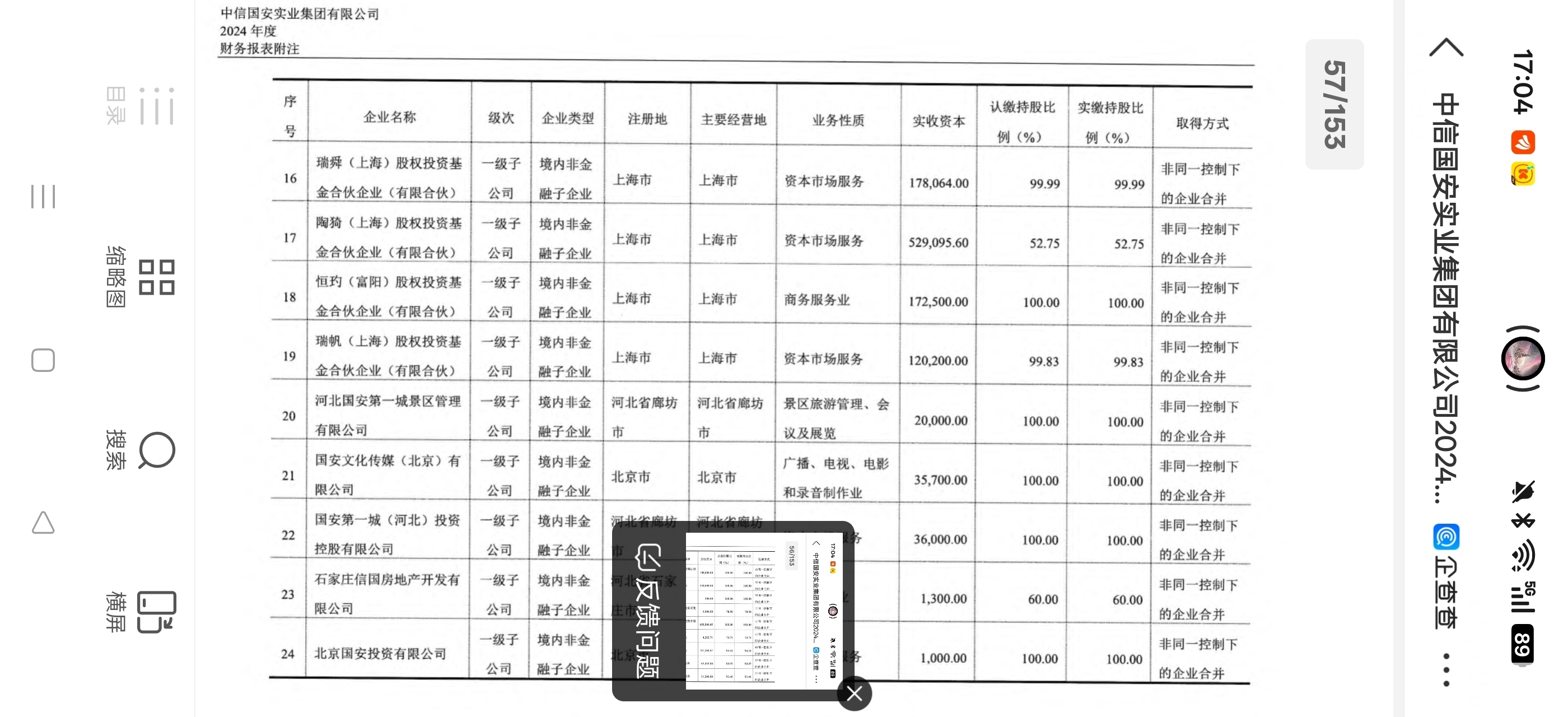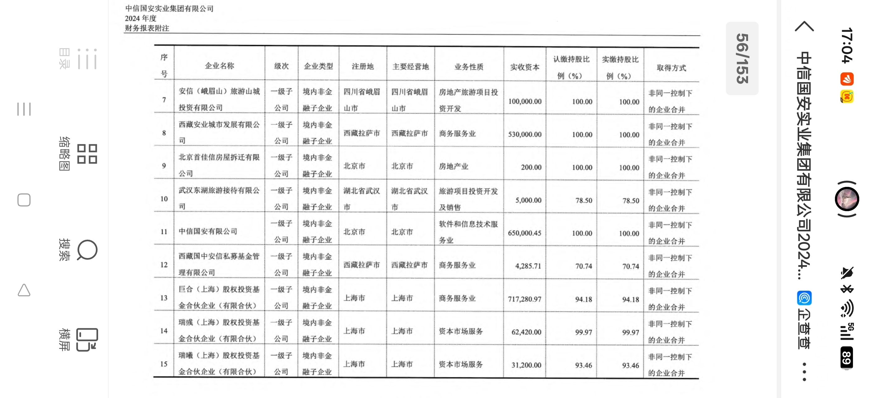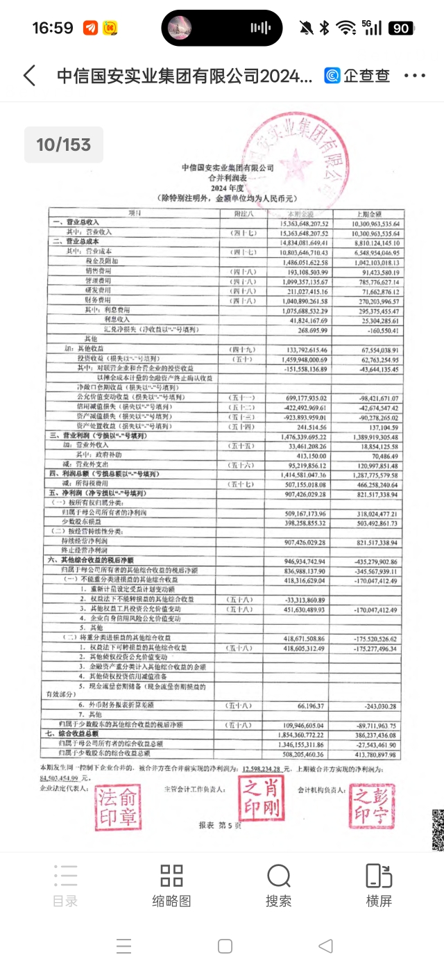 $国安股份(SZ000839)$ 中信国安实业集团有限公司2024年被合并方在合并之前净利润是12.6亿,也就是除了国安实业集团有限公司以外的全部他可以合并报表的子公司一共产生了12.6亿的净利润,那么到底是哪些子公司或者某个子公司产生了这么多的净利润呢?大家分析一下