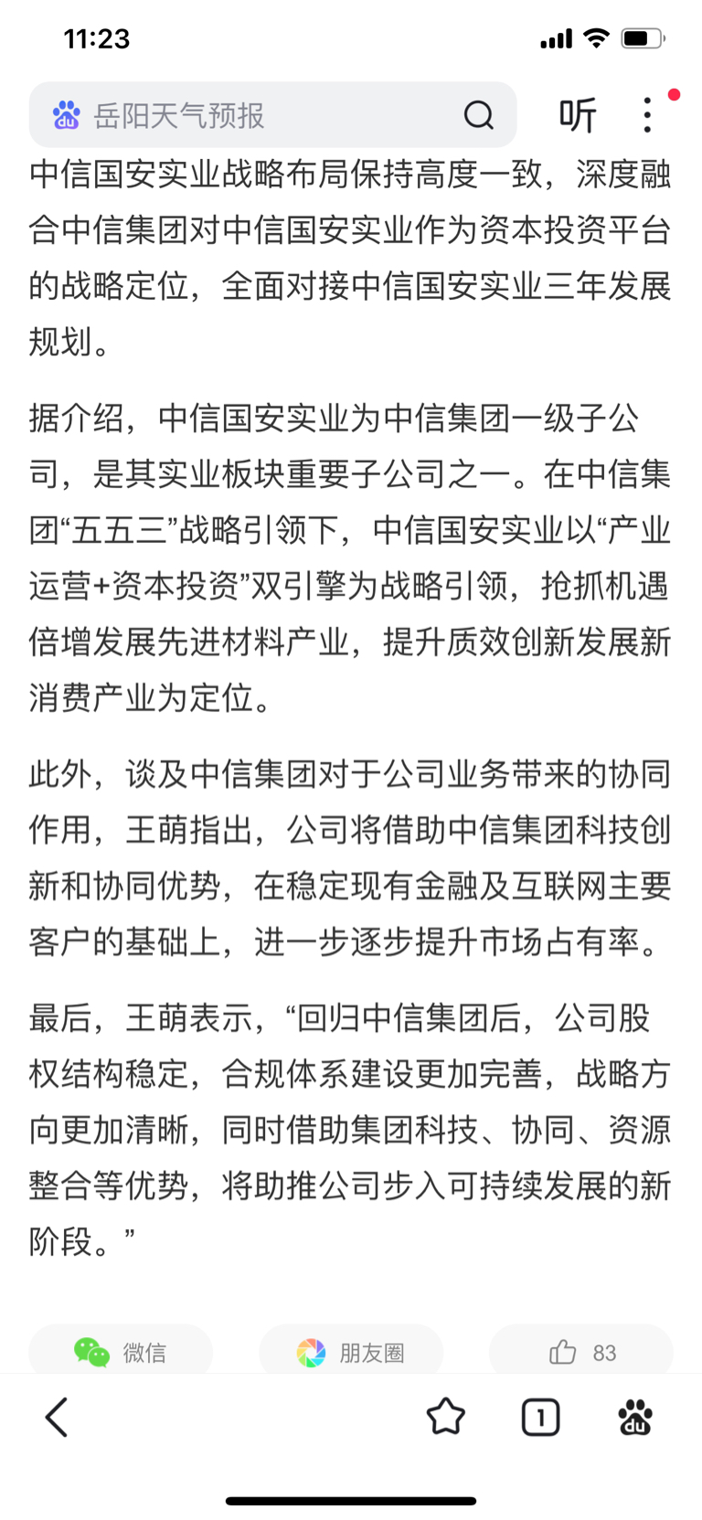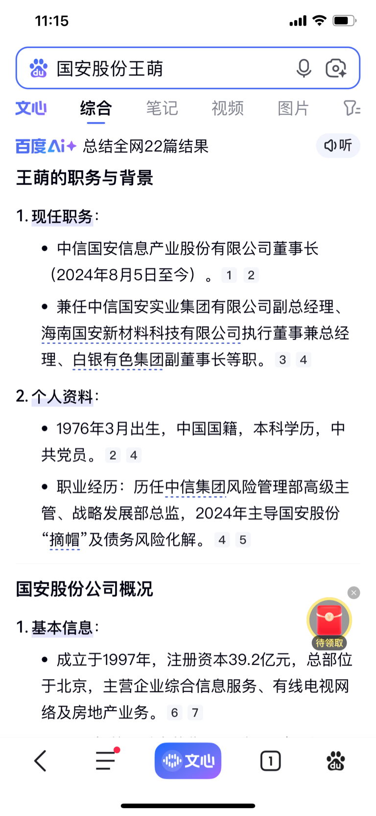 $国安股份(SZ000839)$ 2024年8月5日任中信国安信息产业股份有限公司董事长,历任中信集团风险管理部高级主管、战略发展部总监,2024年主导国安股份“摘帽〞及债务风险化解。王萌表示:“回归中信集团后,公司股权结构稳定,合规体系建设更加完善,战略方向更加清晰,同时借助集团科技、协同、资源整合等优势,将助推公司步入可持续发展的。”