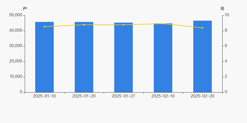 2025年1月10日至今,公司股东户数有所增长,区间涨幅为1.77%。2025年1月10日至2025年2月20日区间股价下降1.76%。