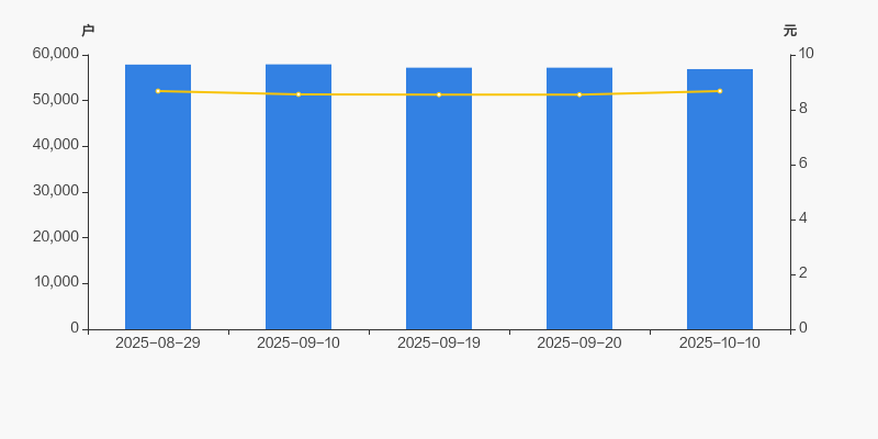 2025年8月29日至今,公司股东户数有所下降,区间跌幅为1.71%。2025年8月29日至2025年10月10日区间股价下降0.00%。
