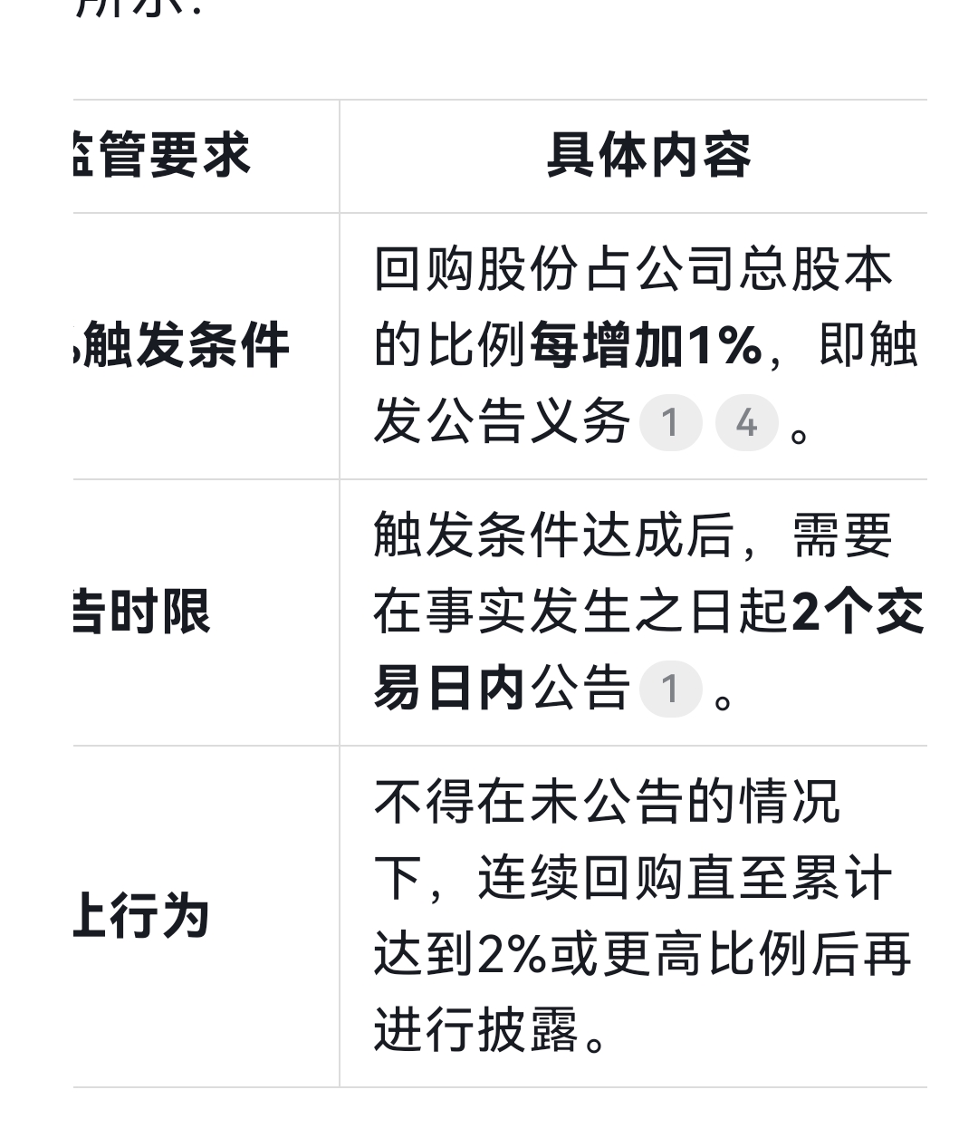 看了下最新的回购政策,是不允许达到1%以后,未公告的情况下持续回购更大比例的份额