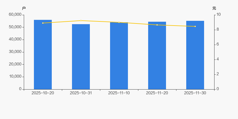 自2025年10月31日以来,公司股东户数连续3期上涨,截至目前增幅为5.11%。2025年10月31日至2025年11月30日区间股价下降8.45%。