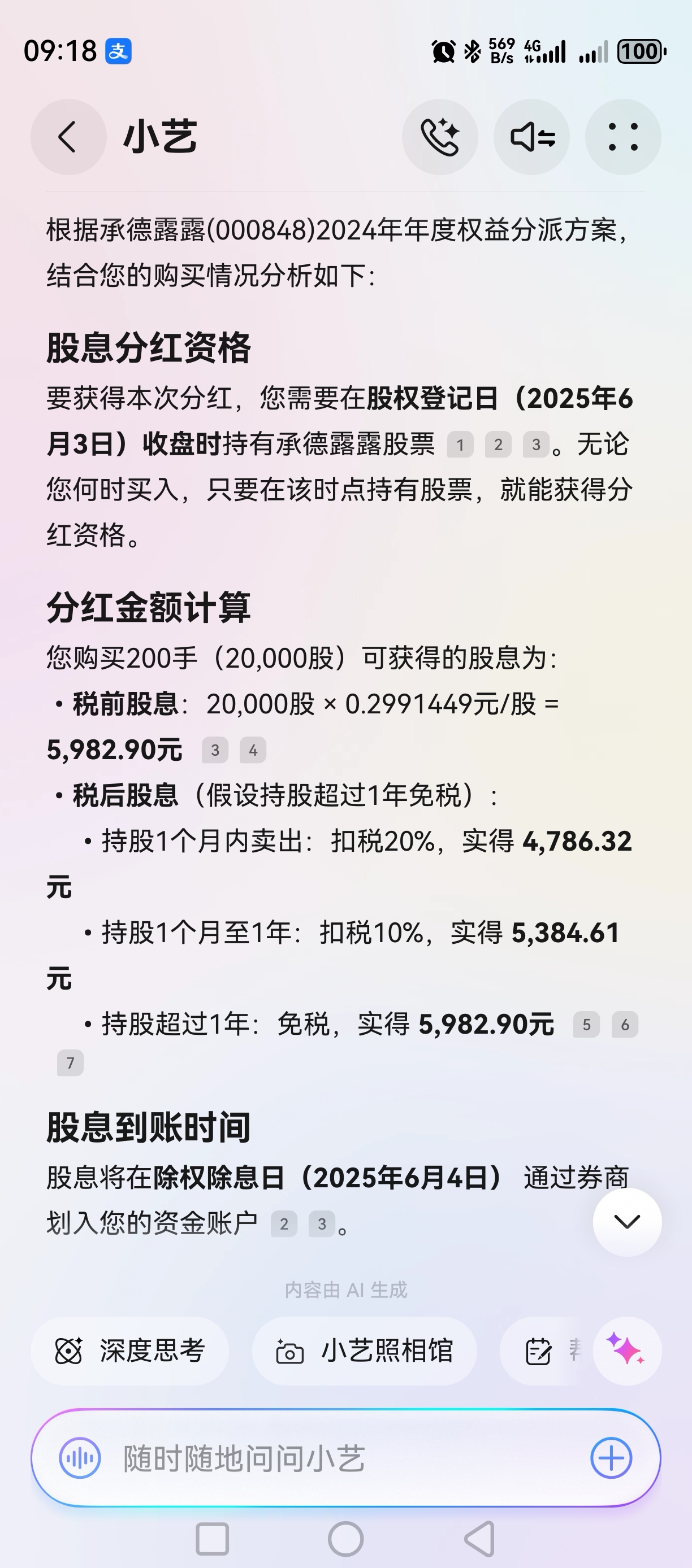 $承德露露(SZ000848)$ 持股拿息也不错,到明年就有近6000元