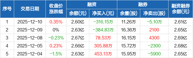 承德露露:融资净偿还316.15万元,融资余额2.6亿元(12-10)