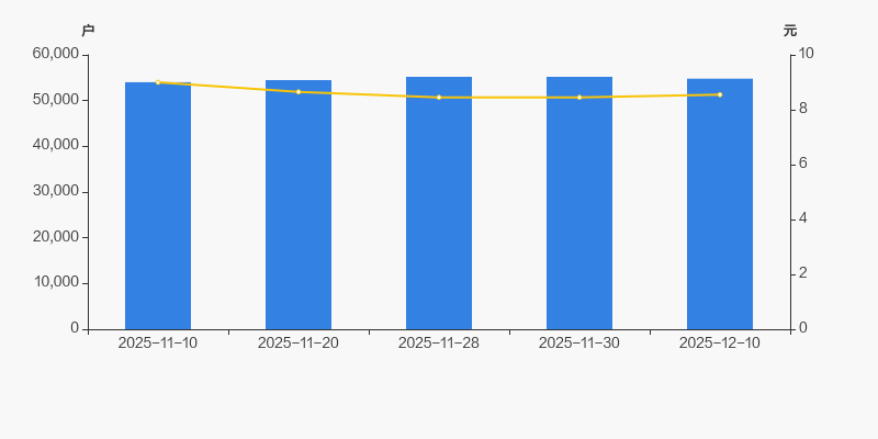 2025年11月10日至今,公司股东户数有所增长,区间涨幅为1.43%。2025年11月10日至2025年12月10日区间股价下降5.00%。