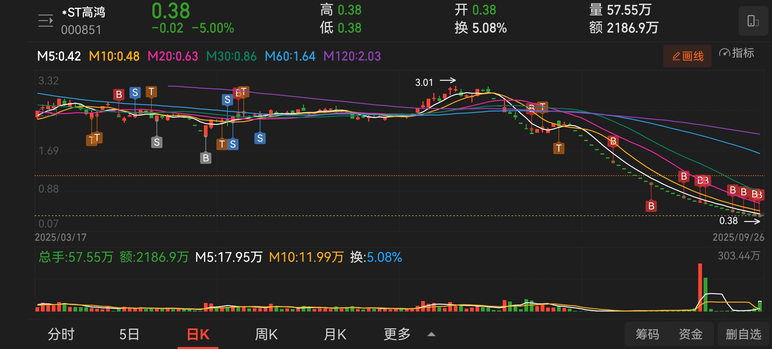$*ST高鸿(SZ000851)$ 去三板剩几分钱也没关系,就当没有了,陪你到最后。
