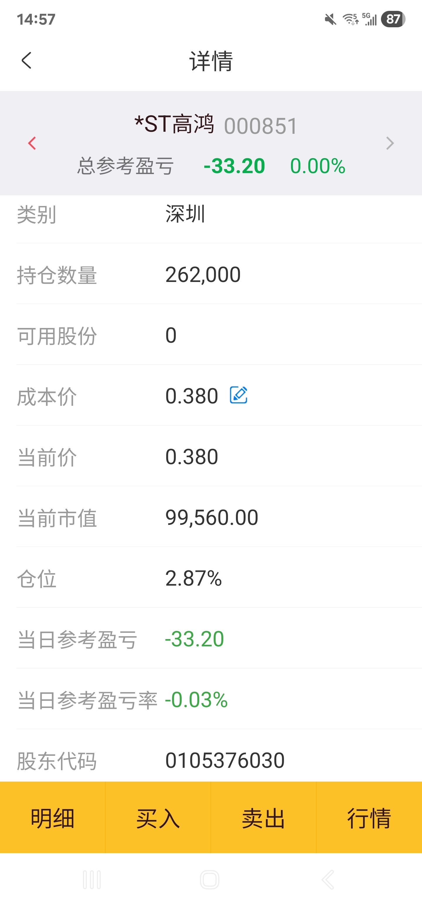 $*ST高鸿(SZ000851)$ 做一回。。。就当不见10万了。