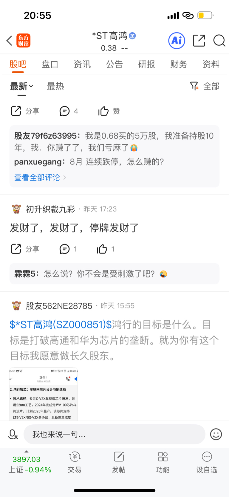 温馨提示: 1.根据《证券法》规定,禁止编造、传播虚假信息或者误导性信息,扰乱证券市场;2.用户在本社区发表的所有资料、言论等仅代表个人观点,与本网站立场无关,不对您构成任何投资建议。用户应基于自己的独立判断,自行决定证券投资并承担相应风险。《东方财富社区管理规定》