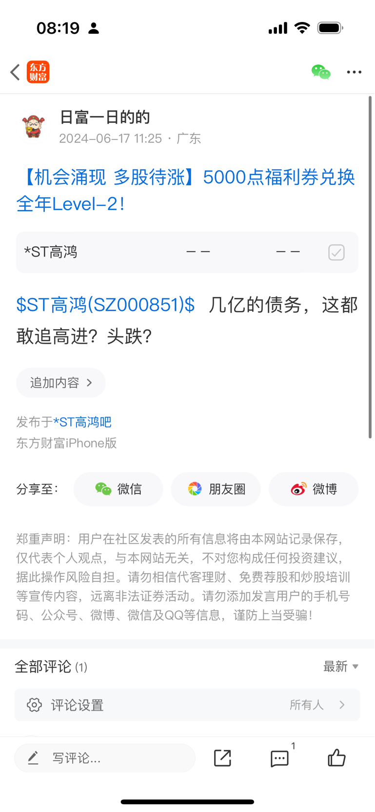 $*ST高鸿(SZ000851)$ 君子不立于危墙之下。2024年就开始呼喊不要买高鸿,会退市