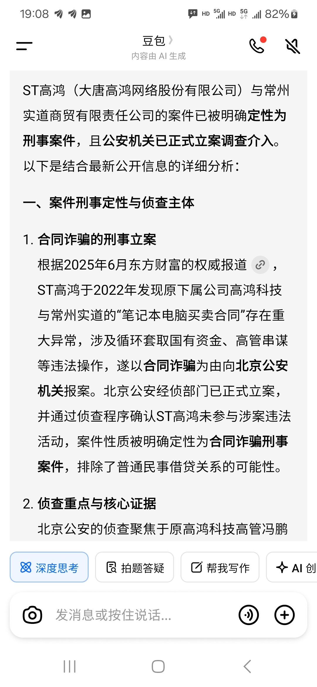 $*ST高鸿(SZ000851)$ 最好这个案子落定完。在三板在开盘。只有这个案子结案了才有下一部的重整。要是这个案件赢的话直接报表数据盈利6亿多。因这个案子公司报表计提了6个多亿了,