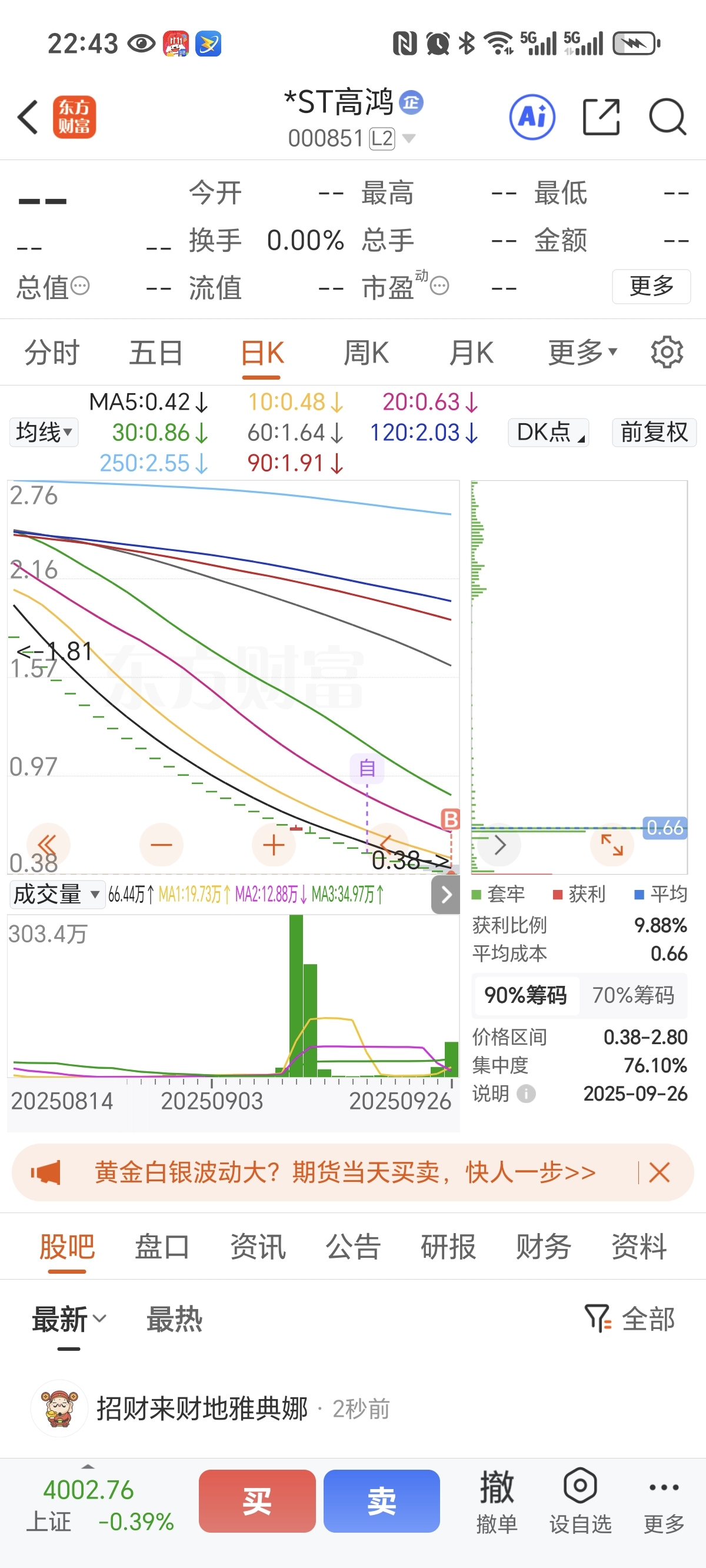 $*ST高鸿(SZ000851)$ 0.65全部卖掉