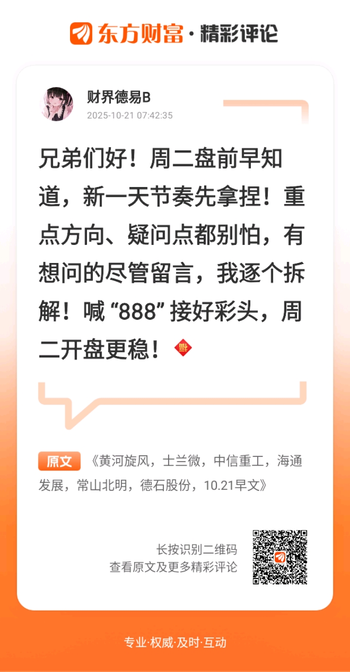 发表于 2025-10-21 09:22:10 东方财富Android版 发布于 福建