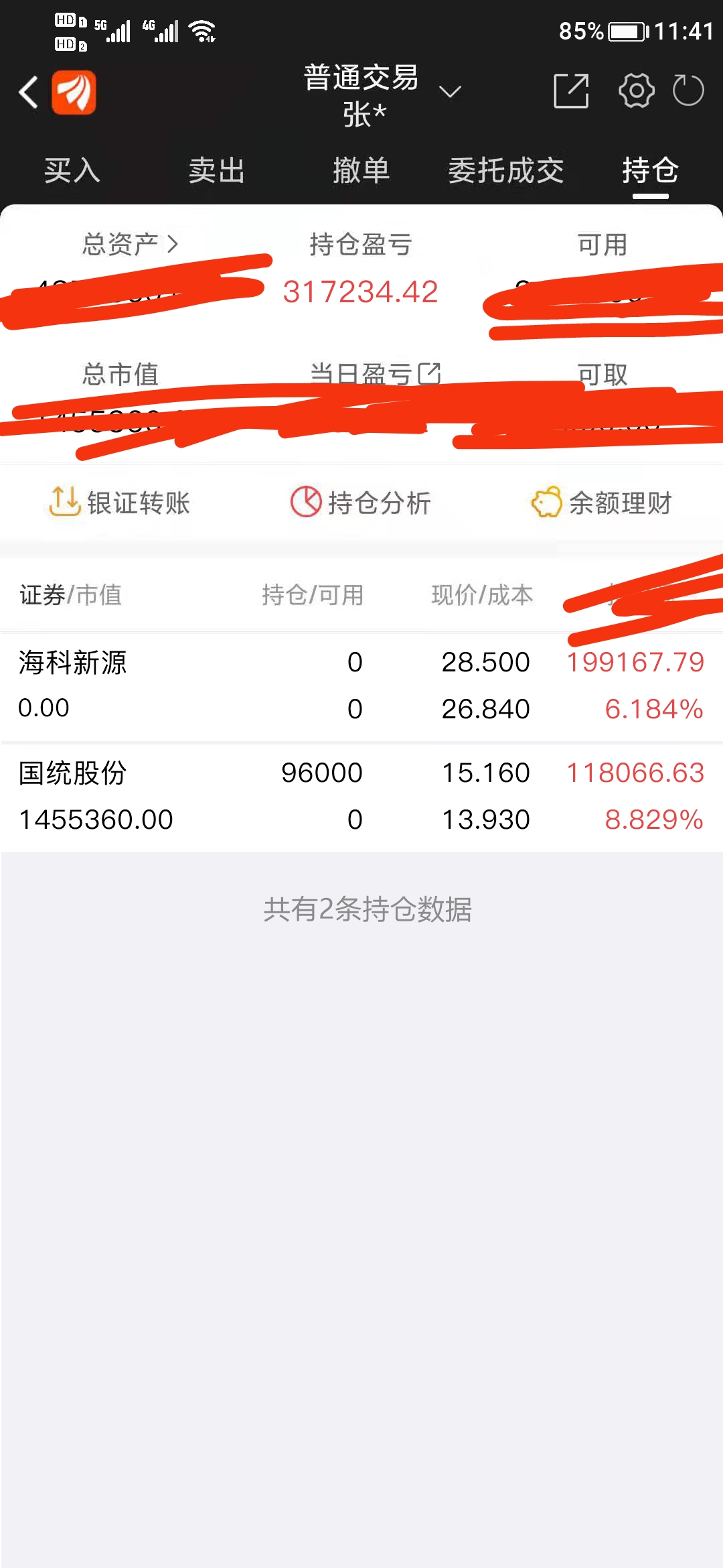 大家好,更新一下今日。将海科新源止盈出局了。落袋为安小20个挺不错!新进了国统股