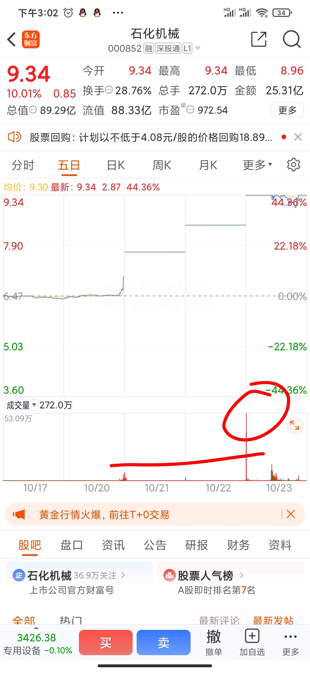 $石化机械(SZ000852)$ 昨天4亿封单今天.开盘成交9亿明天完蛋