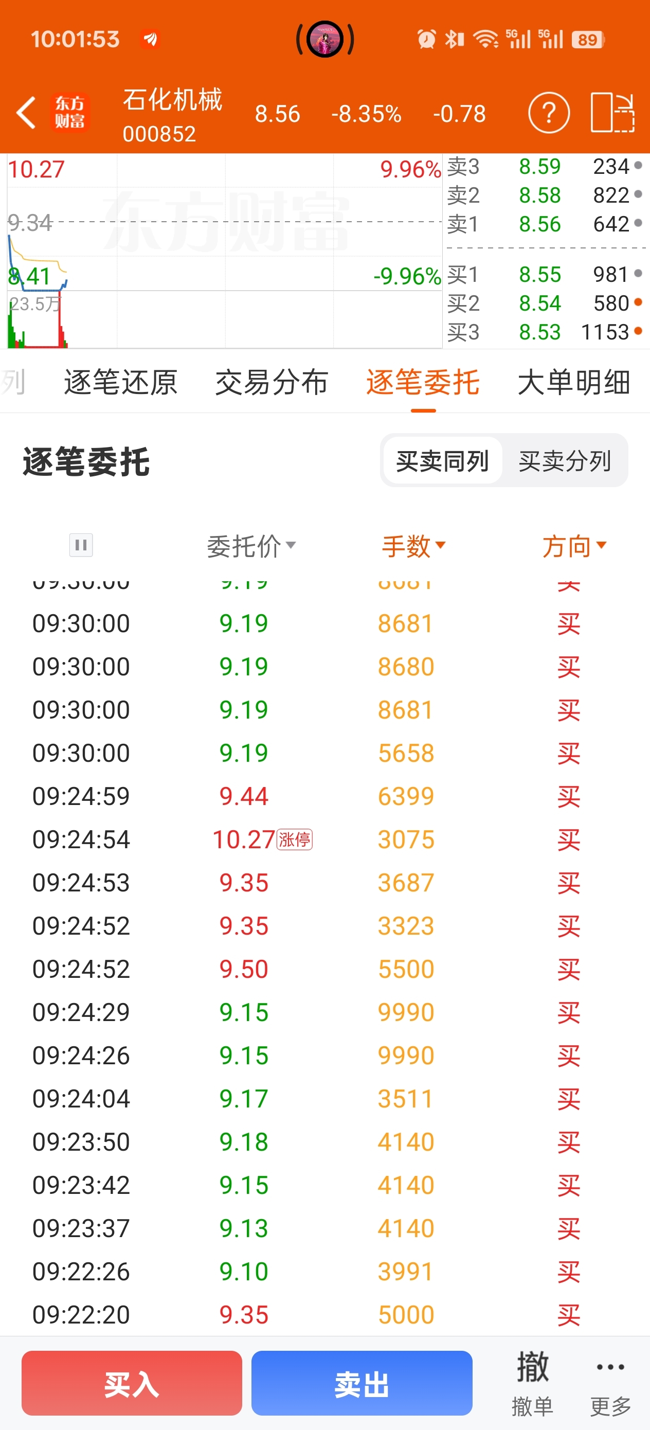 $石化机械(SZ000852)$ 竞价没卖就是个错。。。收盘应该还跌停