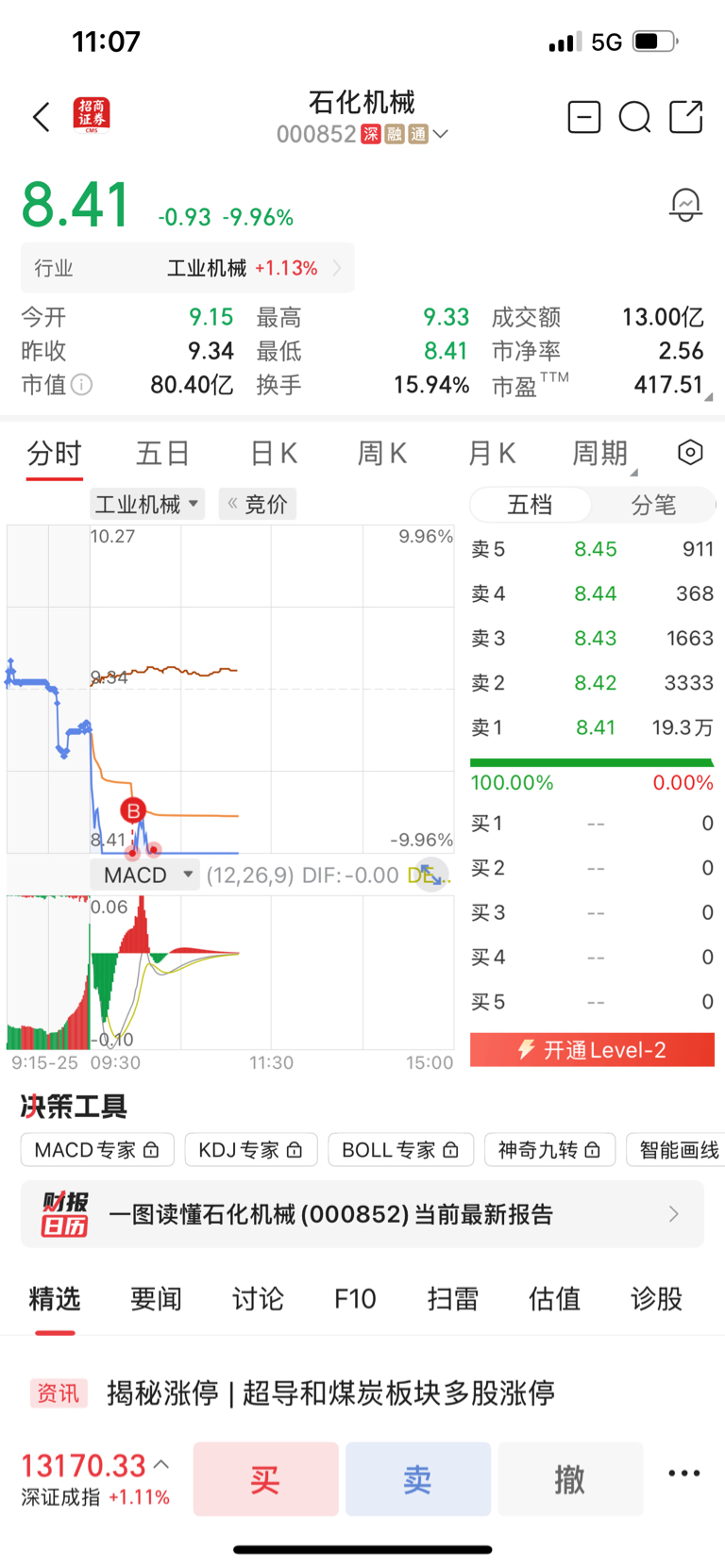 $石化机械(SZ000852)$ 板上卖了神开,来点火,翘板失败