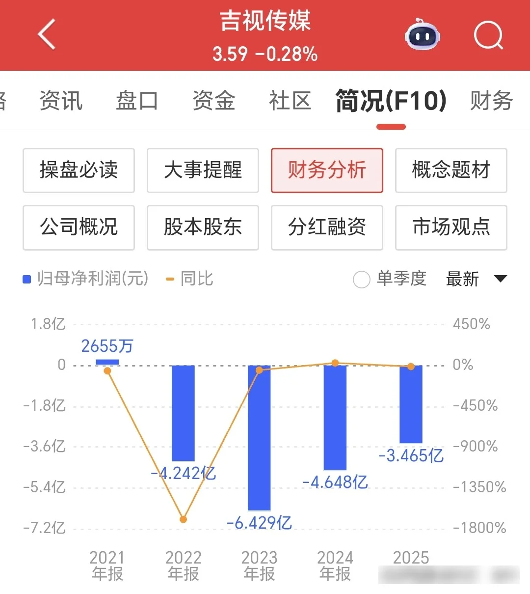 吉视传媒,主要从事智慧广电、数据服务等业务,公司业绩已连续3年半累计亏损18.88亿元,受业绩拖累其股价也长期低迷,2024年时一度跌至最低0.86元,触及面值退市红线,之后的股价才有所反弹。