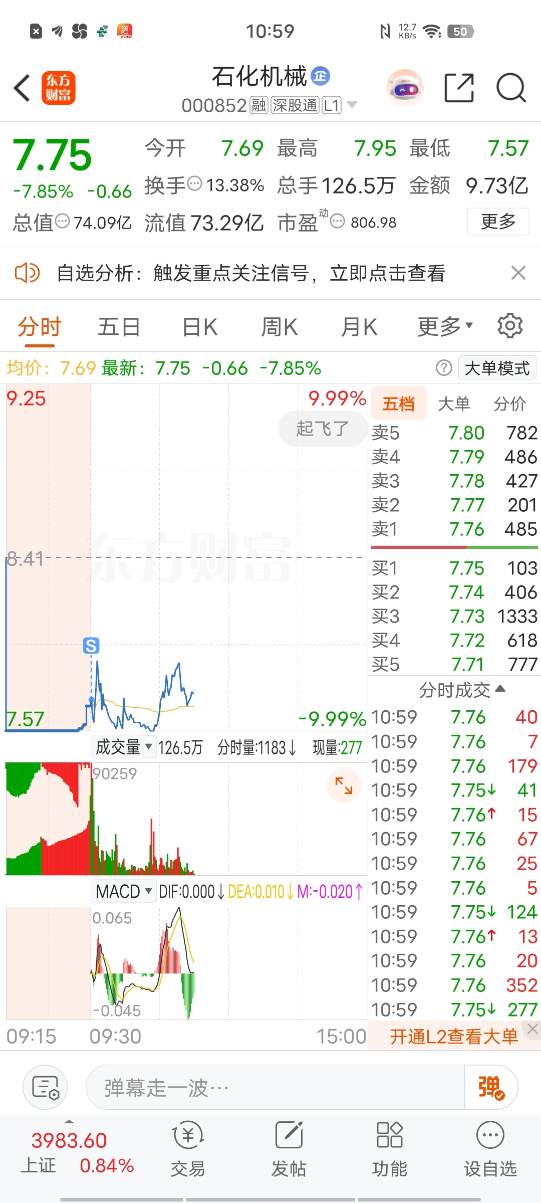 $石化机械(SZ000852)$ 石化开盘就不及预期了,开盘大幅低开,无量。代表都没什么人买入。直接清仓。开盘我看了一下,大有是超预期开盘的,直接上车,而神开开盘大幅放量,直接上车。有时候开盘就那么几分钟就能看出来强弱。