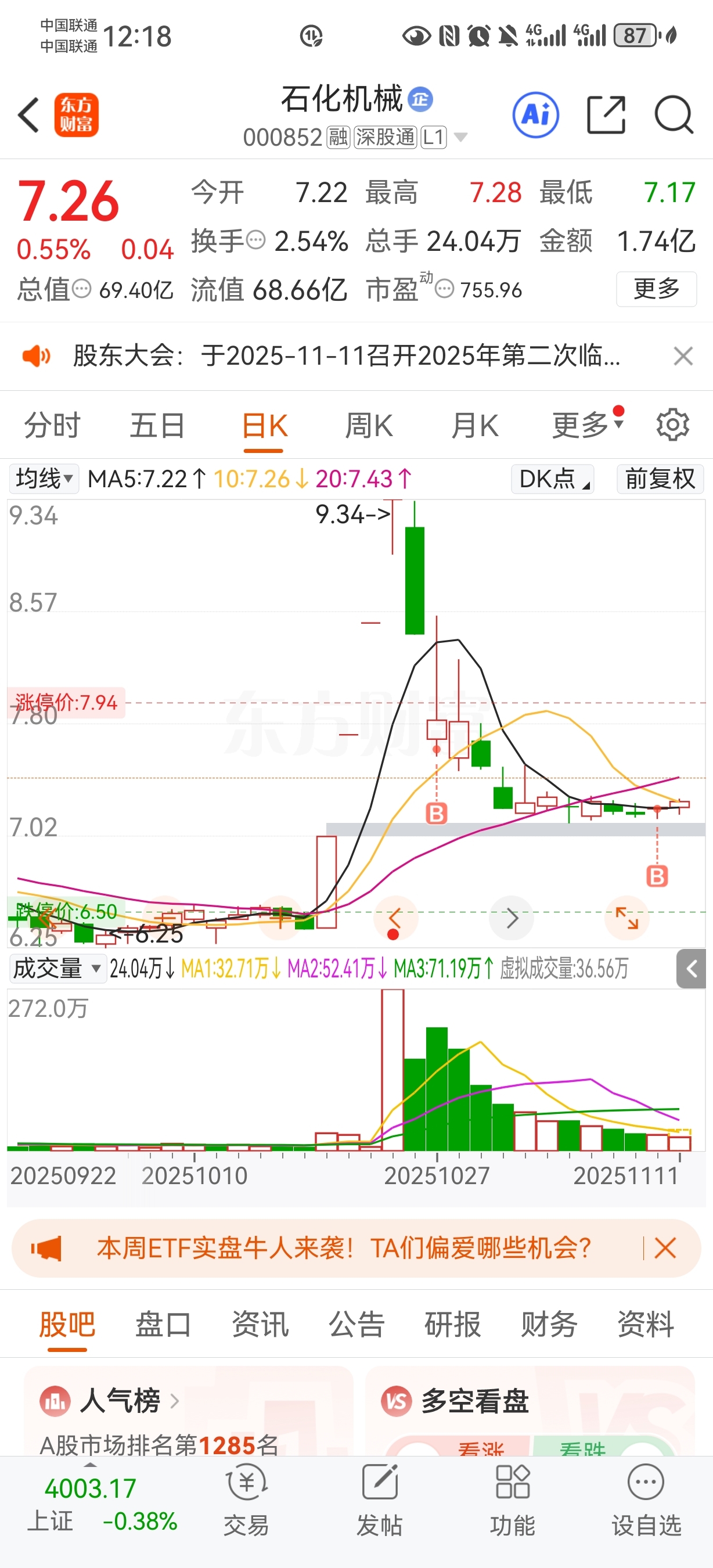 $石化机械(SZ000852)$ 赚八个点没走,补仓现在还亏2个点,不赚够30个点不清仓。