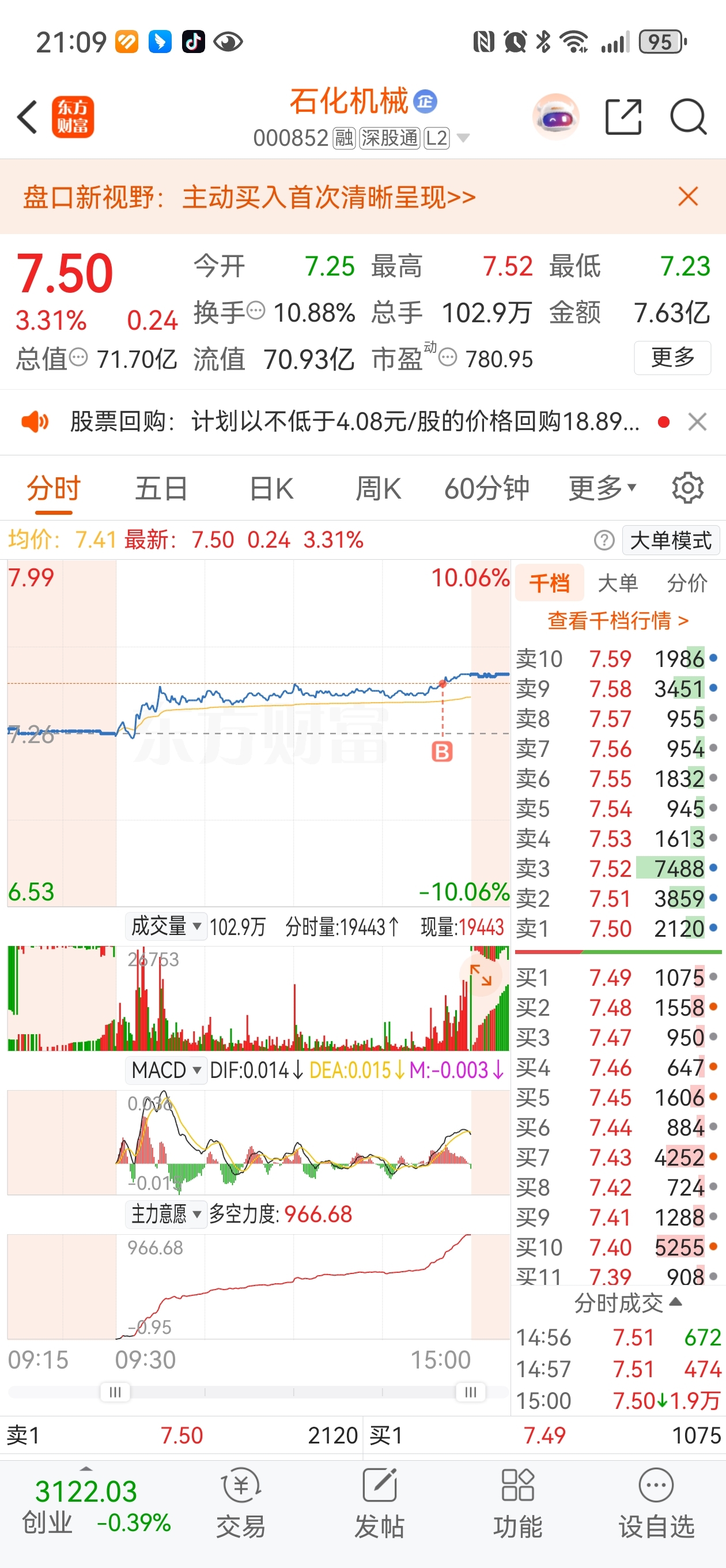 $石化机械(SZ000852)$ 尾盘买了他,明天吃大瓜