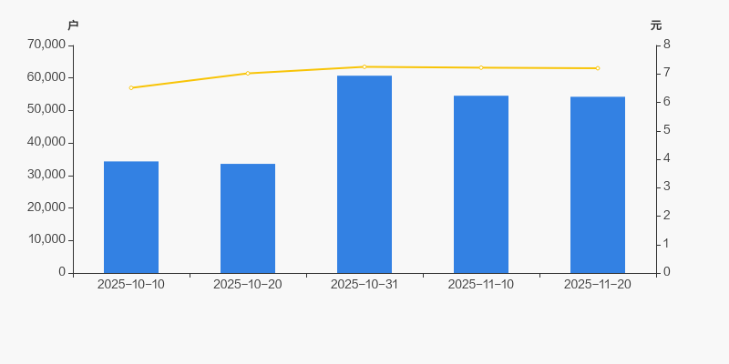 2025年10月10日至今,公司股东户数显著大幅增长,区间涨幅达57.93%。2025年10月10日至2025年11月20日区间股价上涨10.60%。