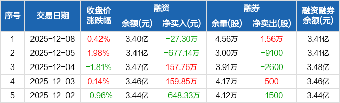 石化机械:融资净偿还27.3万元,融资余额3.4亿元(12-08)