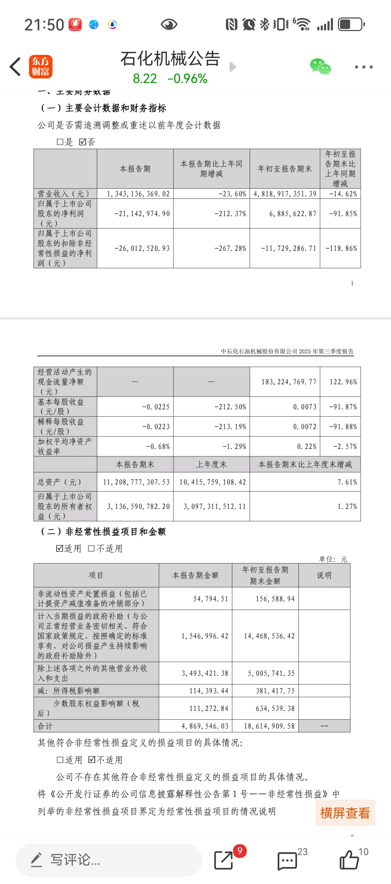 $石化机械(SZ000852)$ 大家看看半年报和三季报,就知道2025年度业绩预告就知道有预期了,明天正常的行情是开盘跌1-2个点,然后回升至红盘以上。但目前看国际石油价格大涨,所以明天开盘应该是不用担心的。