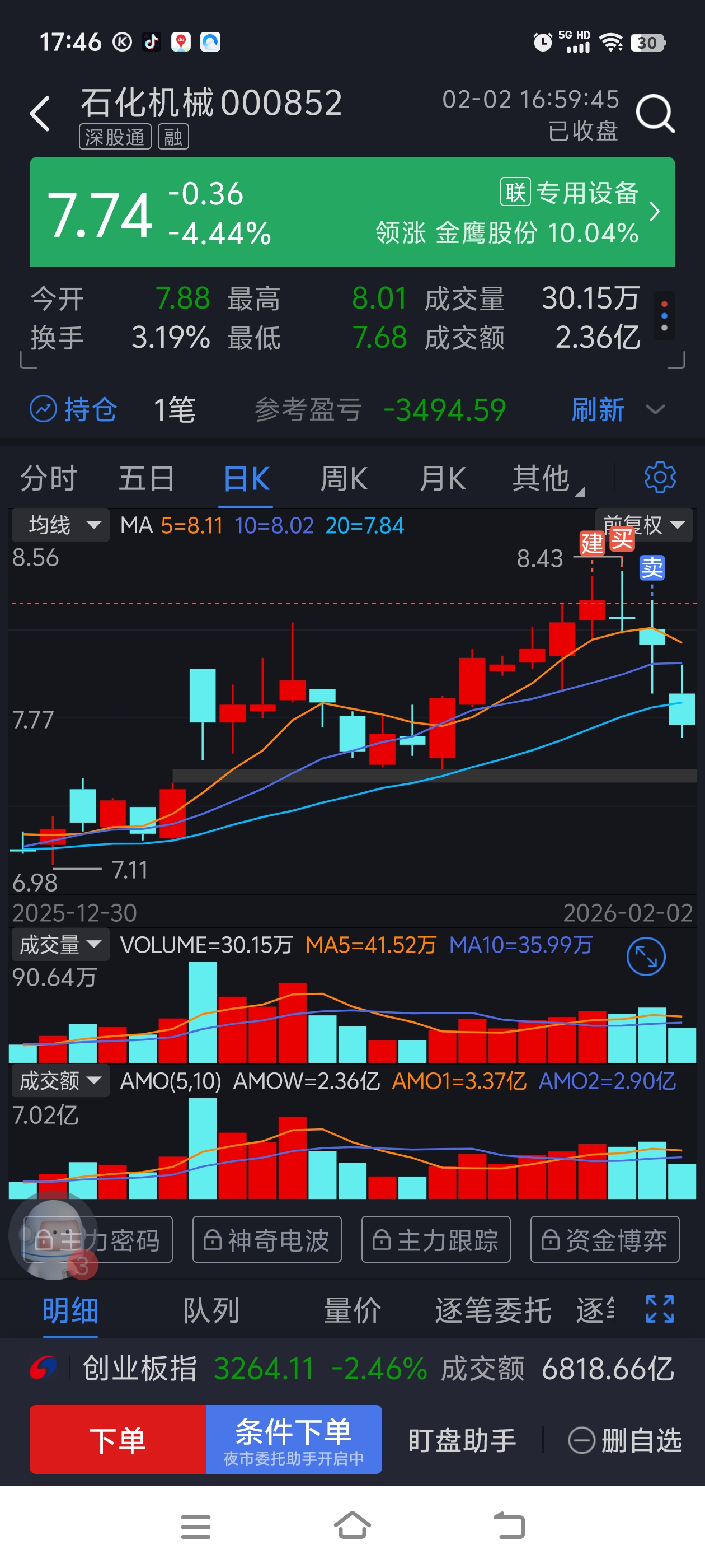 $石化机械(SZ000852)$ 刚建仓