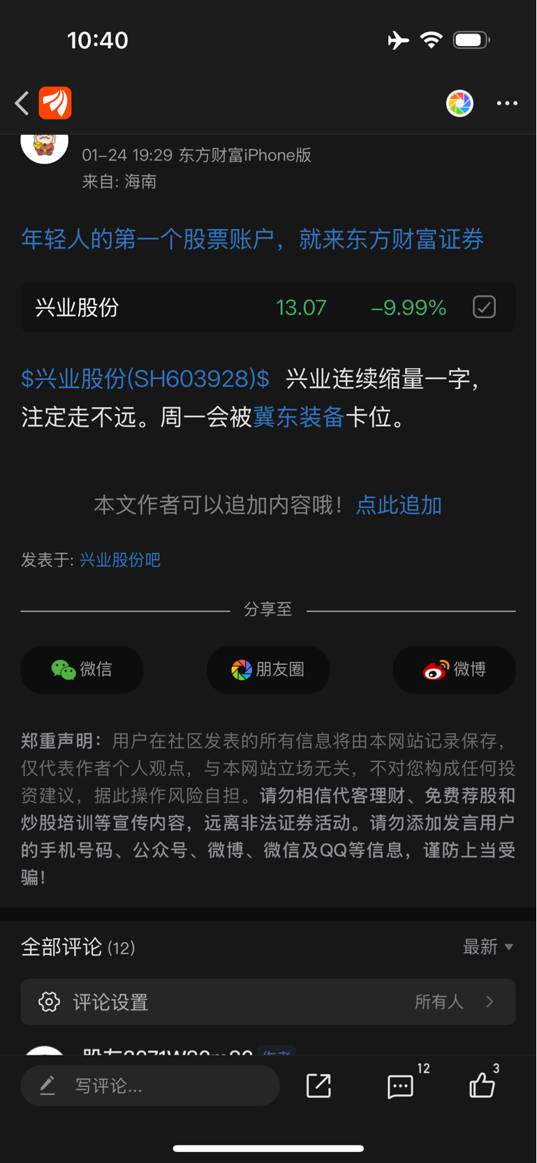 温馨提示: 1.根据《证券法》规定,禁止编造、传播虚假信息或者误导性信息,扰乱证券市场;2.用户在本社区发表的所有资料、言论等仅代表个人观点,与本网站立场无关,不对您构成任何投资建议。用户应基于自己的独立判断,自行决定证券投资并承担相应风险。《东方财富社区管理规定》