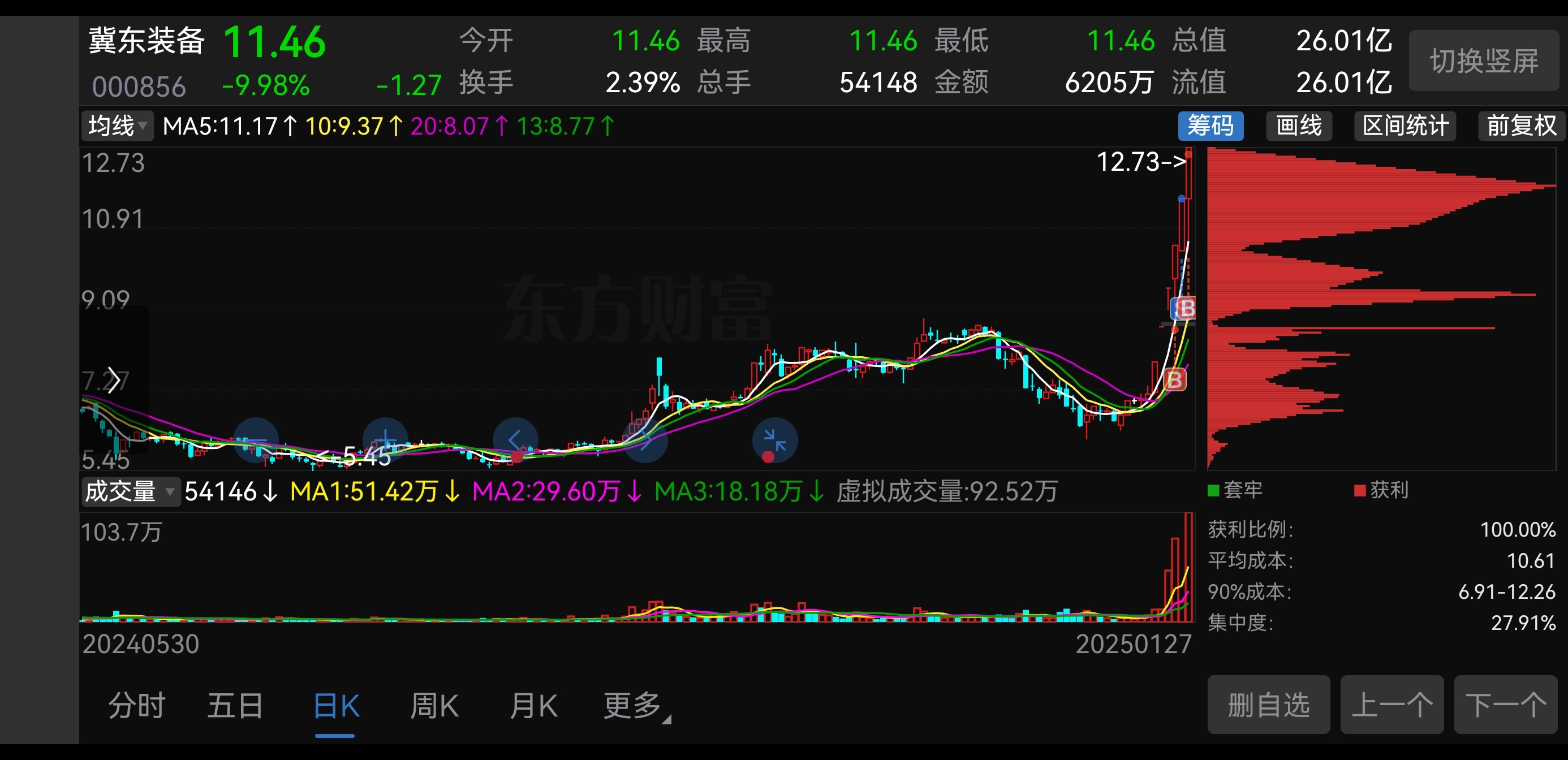 这筹码峰真有意思,上个交易日60的换手,底部筹码没怎么动,今天2%的换手,筹码都