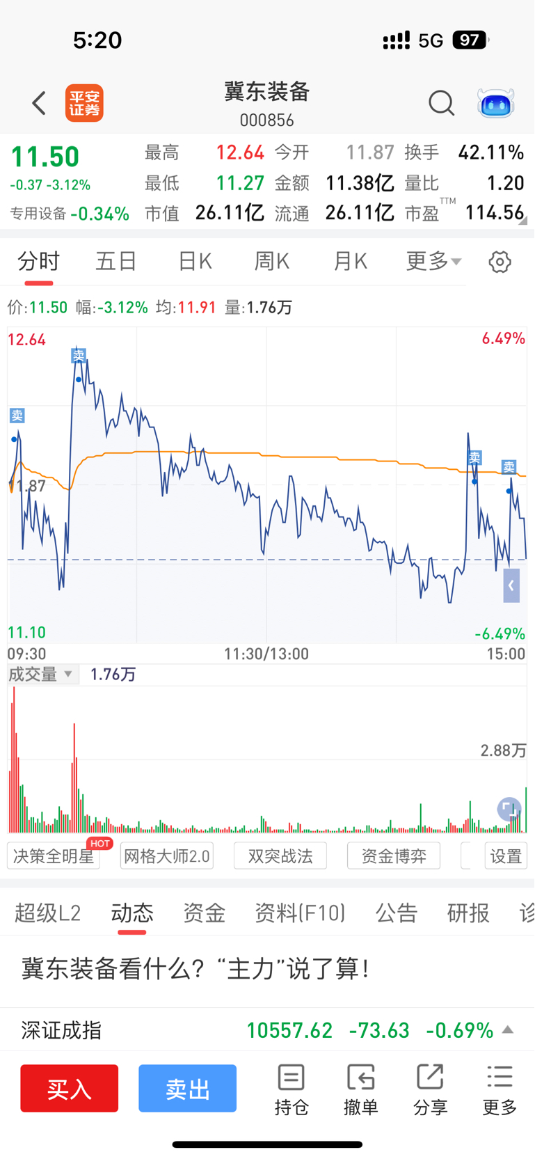 $冀东装备(SZ000856)$ 下周接回,今天只管卖卖,似乎在走回调趋势应该没错