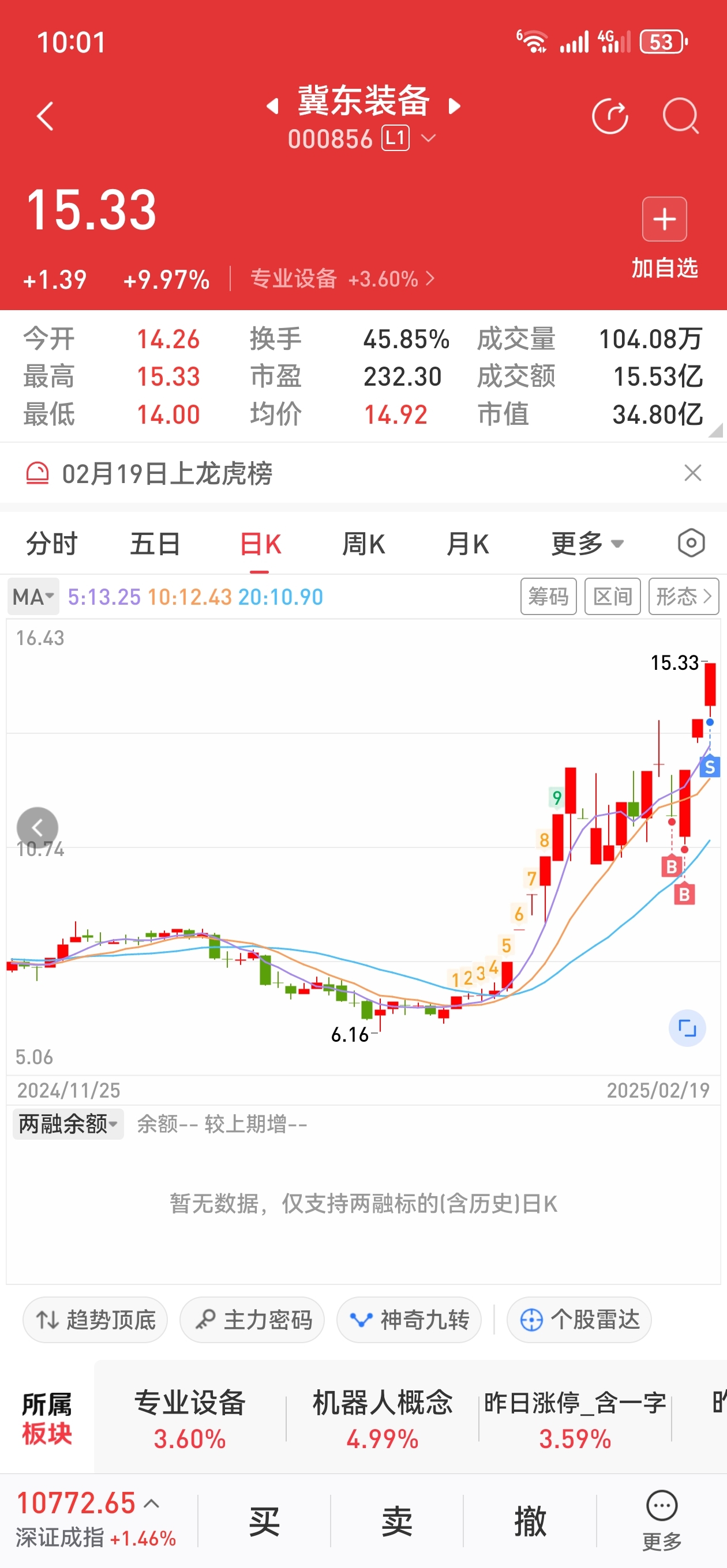 $冀东装备(SZ000856)$ 买进4天三十多个点很知足了,持有的继续发财