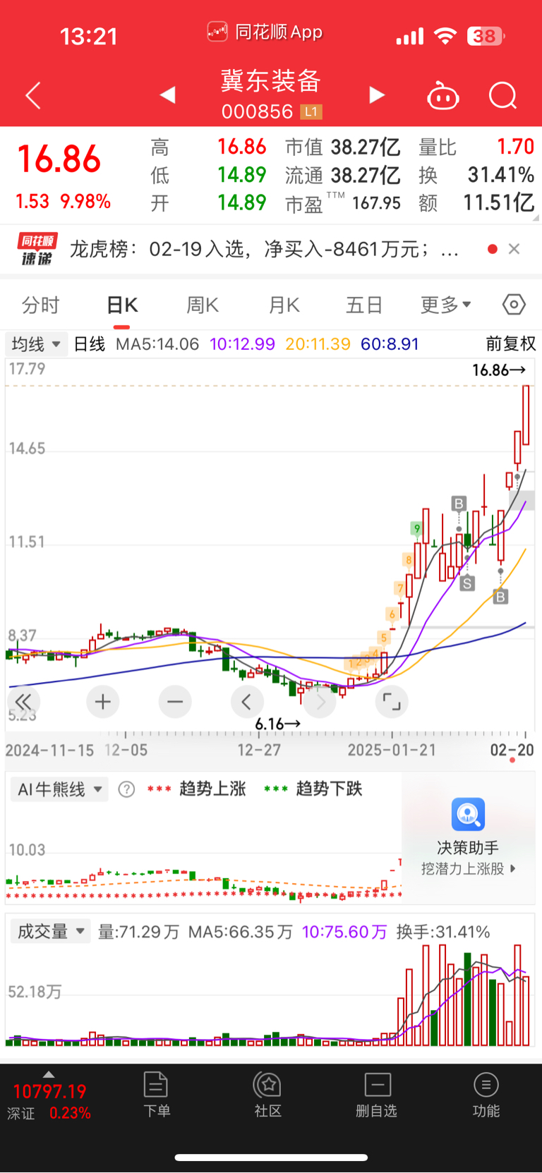 $冀东装备(SZ000856)$ 天天弱,天天板,你是真行?