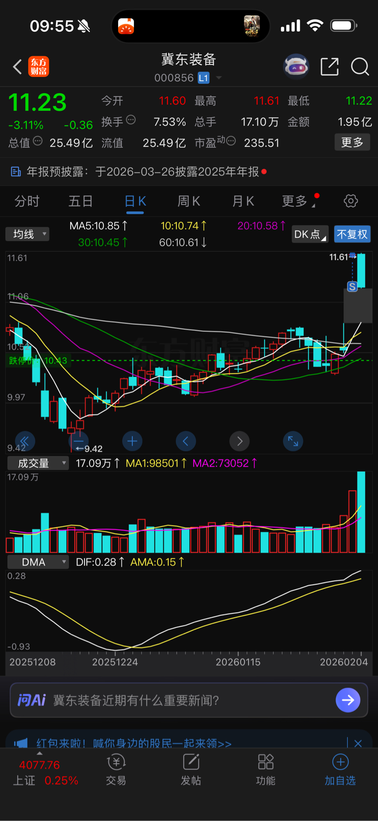 $冀东装备(SZ000856)$ 昨天一字板走的,知足常乐吧!