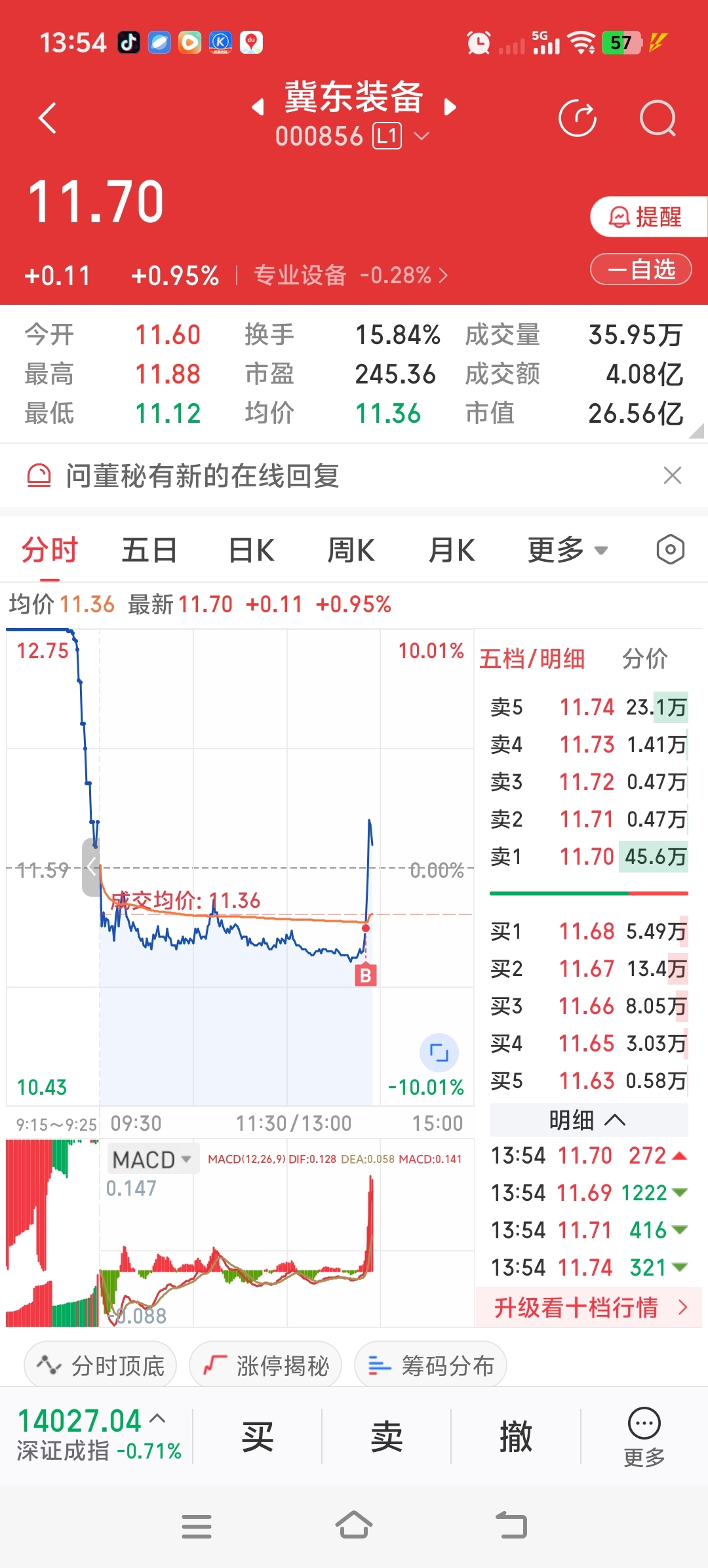 $冀东装备(SZ000856)$ 早盘卖了润贝空仓了一天,豆包跟我说冀东在换手洗盘,突然看到拉升于是追了,不会利润回头吐吧。。。。主力上去行不行啊。。。