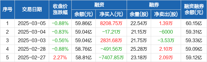 五粮液:融资净买入8208.75万元,融资余额59.86亿元(03-05)